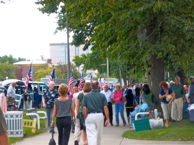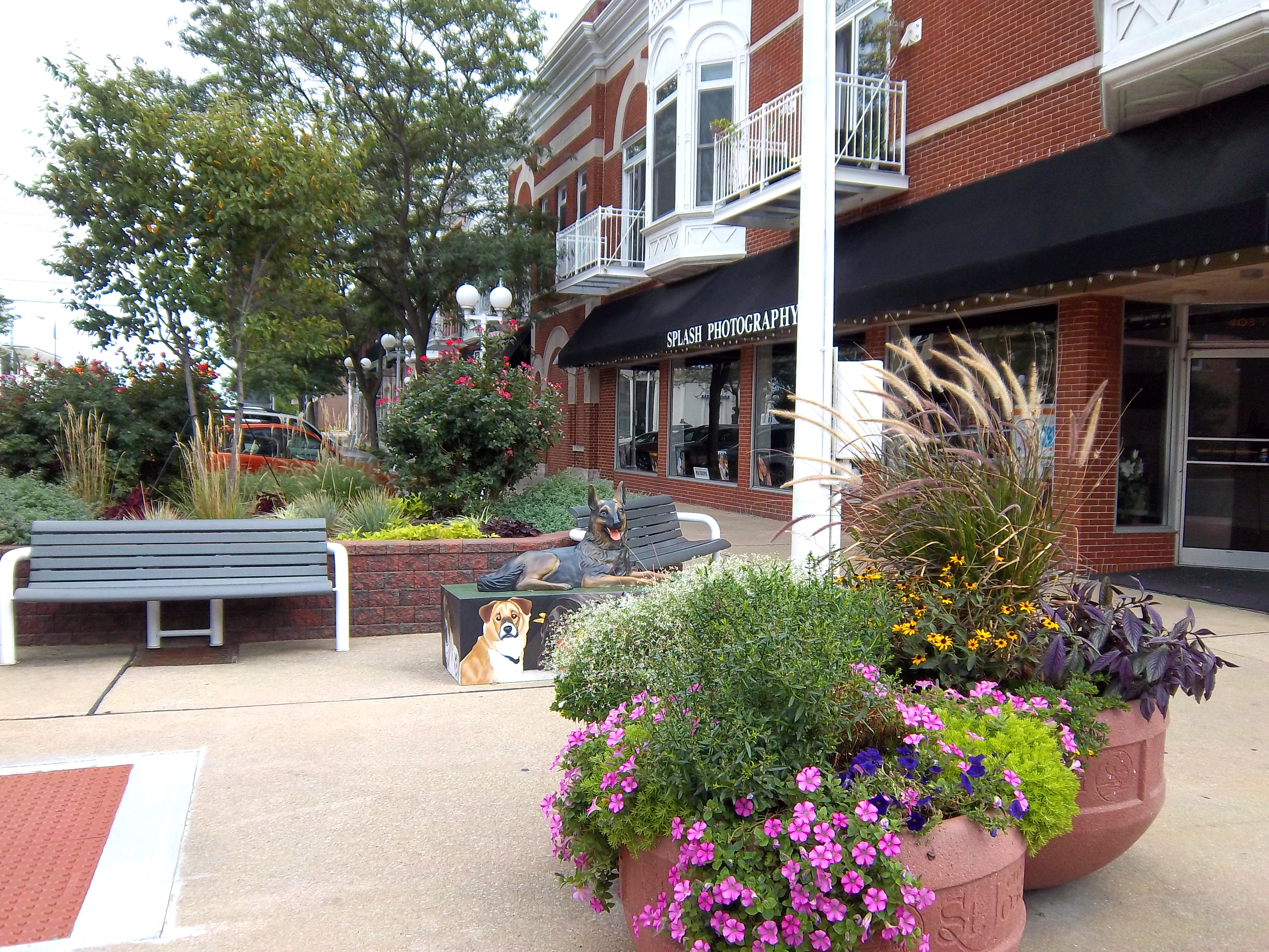 Bluffでのアンテイークの市(Antiques on the Bluff – 5月から9月まで、毎月第1日曜日に開催)。その中で、マネき猫のような佇まいの犬が一匹。。。Bluff は Lake Blvd.に沿ってあり、春〜夏はイベントがひっきりなしに行われている。 ダウンタウンの中心通りState St. はひとつ隣の通りにある。