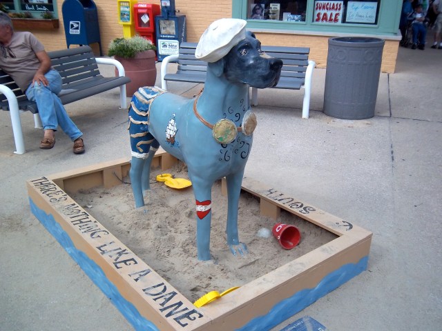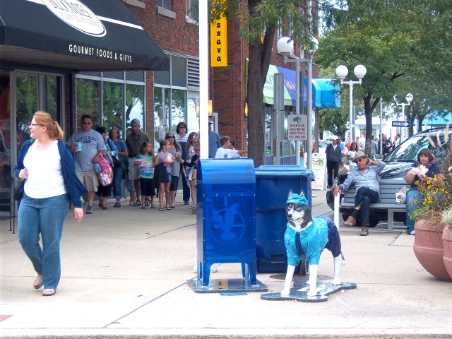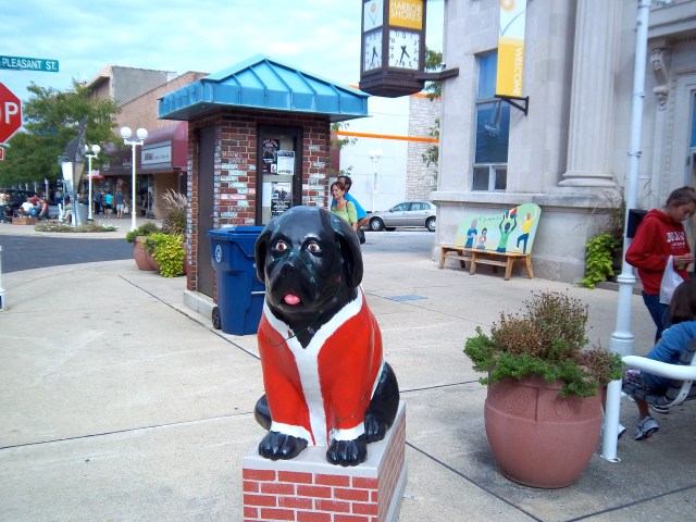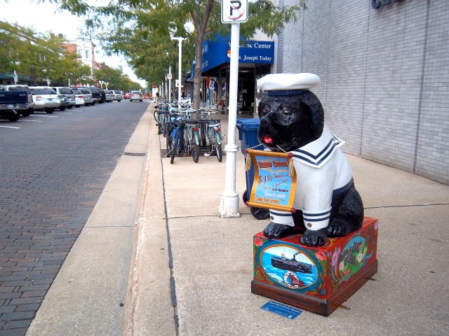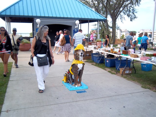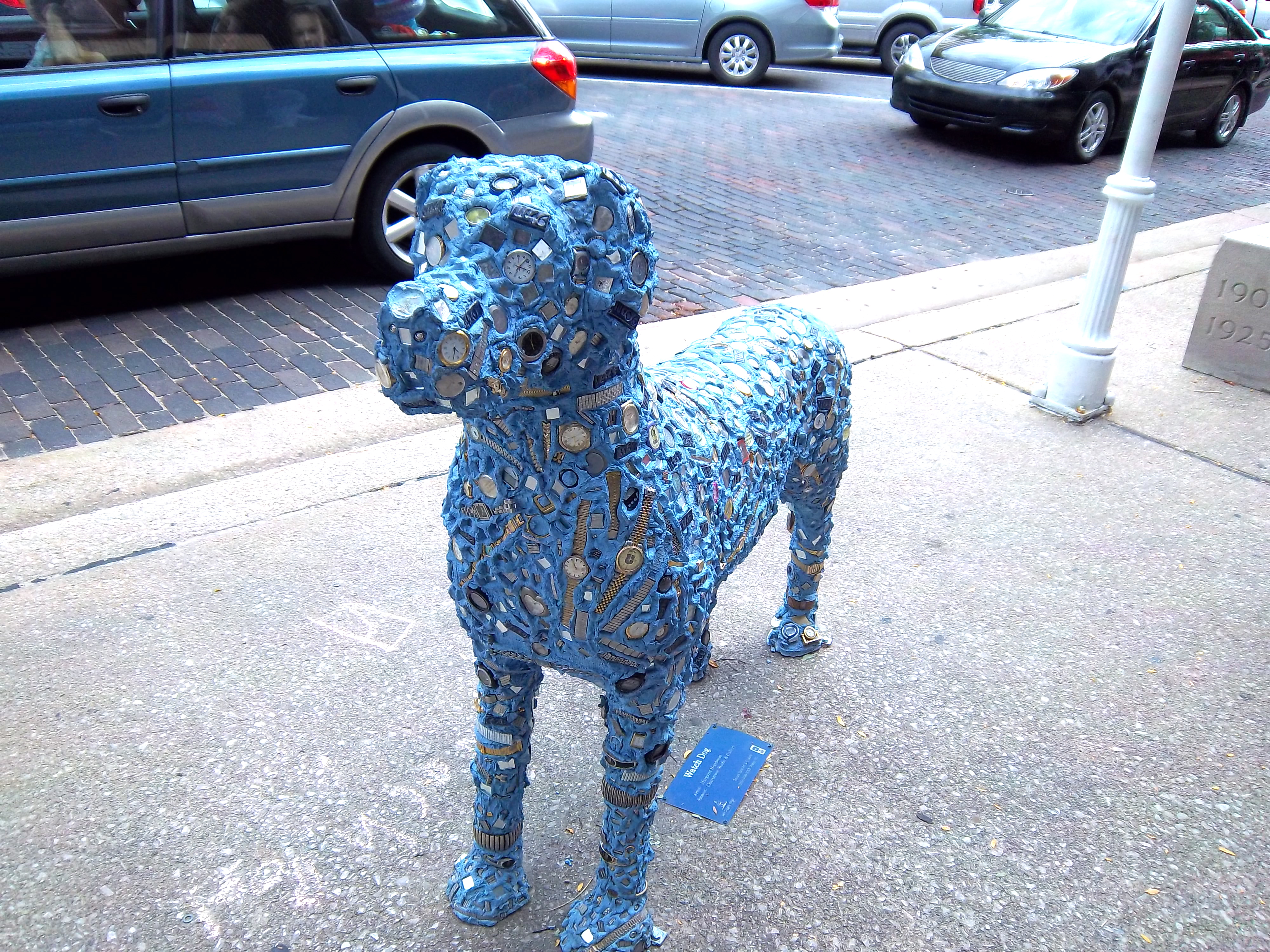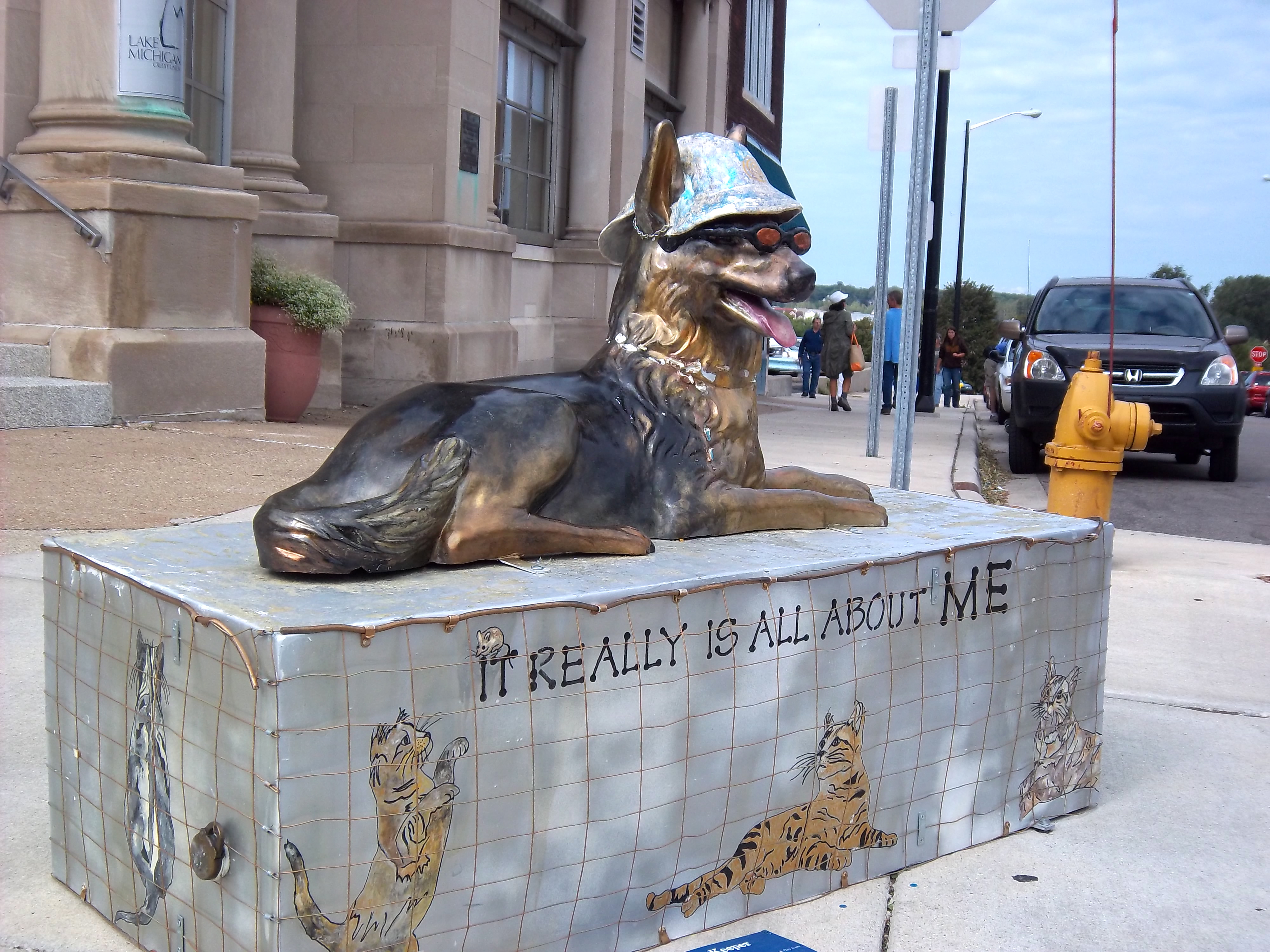 34個の犬の彫刻が、ダウンタウンのいたるところに置かれ、「Hot Diggity Dogs」と呼ばれたそうだ。それぞれの犬は違うアーチストが作ったもので、各アーチストについての話を聞ける電話番号が設置されていたとのこと。9月11日にBLUFFにある公園(Lake Bluff Park)でオークションにかけられ、10月1日までダウンタウンに置かれていたとのこと。7年前くらいからこのプロジェクトは始められ(夏のシカゴの街のあちこちにカラフルな牛の彫刻が置かれるようになって話題になったのが、もう10年以上も前のことだったろうか。シカゴををまねしたんだと思う)、毎年違うアニマルをテーマにしてきている。