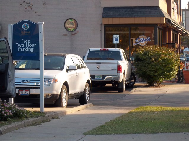 ダウンタウン駐車事情(駐車場のひとつ)。2時間まで無料)