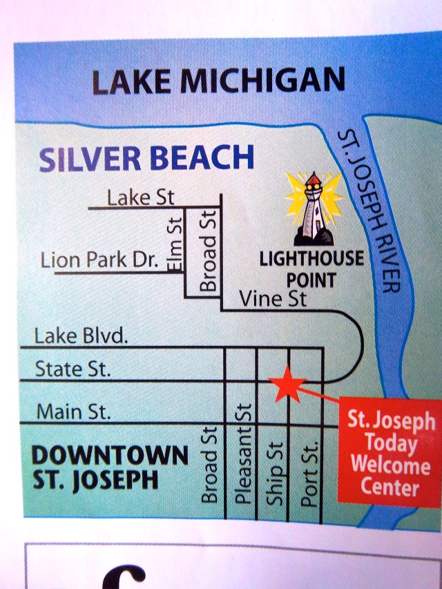 セントジョゼフの場所はここ。ミシガン湖のビーチタウン。メトロデトロイトからはI-94をまっすぐ西に2時間半〜3時間ほど。インデイアナ州との境に近いので、インデイアナ、シカゴ方面からもすぐ行ける近場のリゾートです。