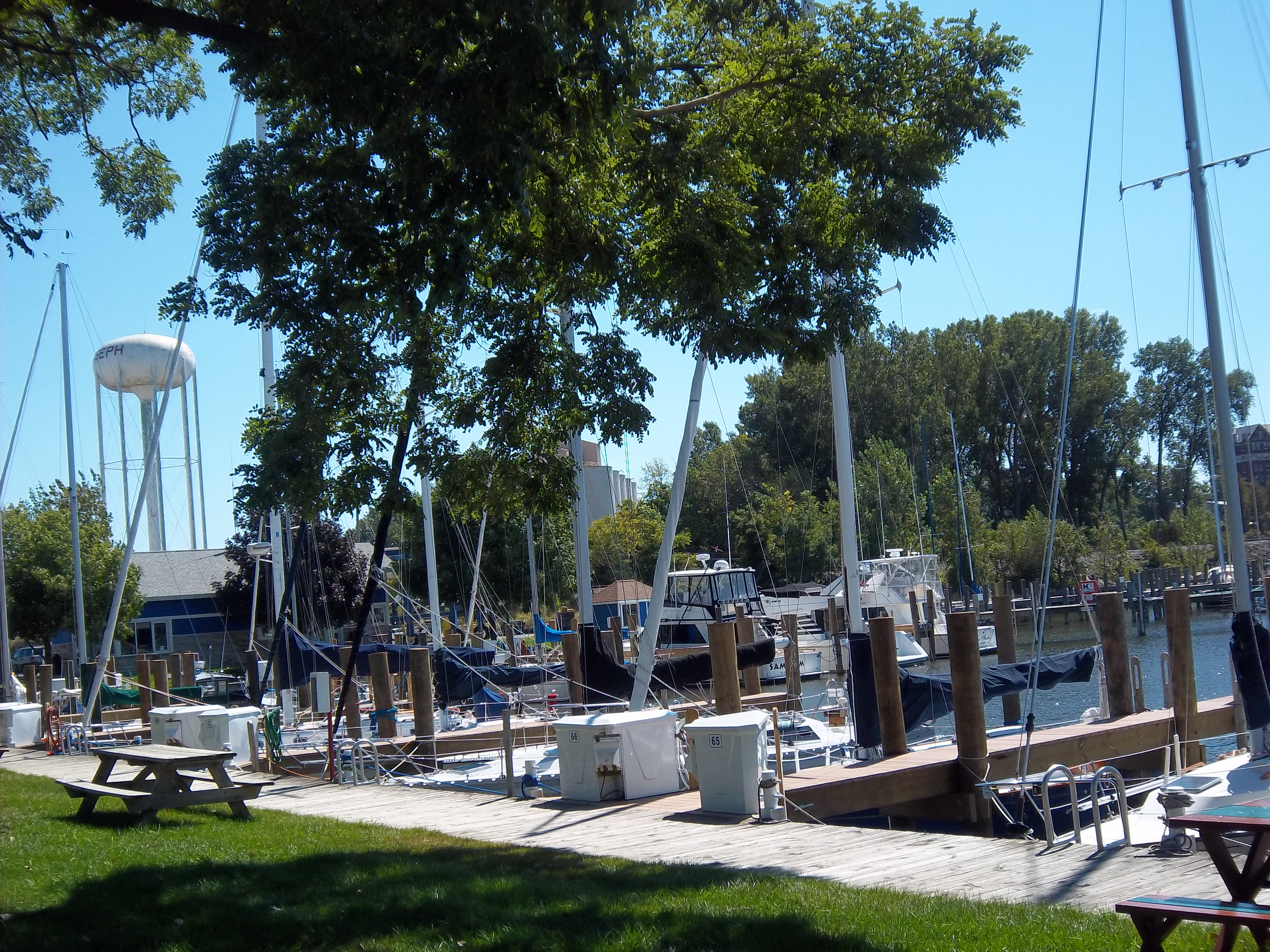 テイスコニアビーチに行く途中にあるヨットクラブ(St. Joseph River Yacht Club)。