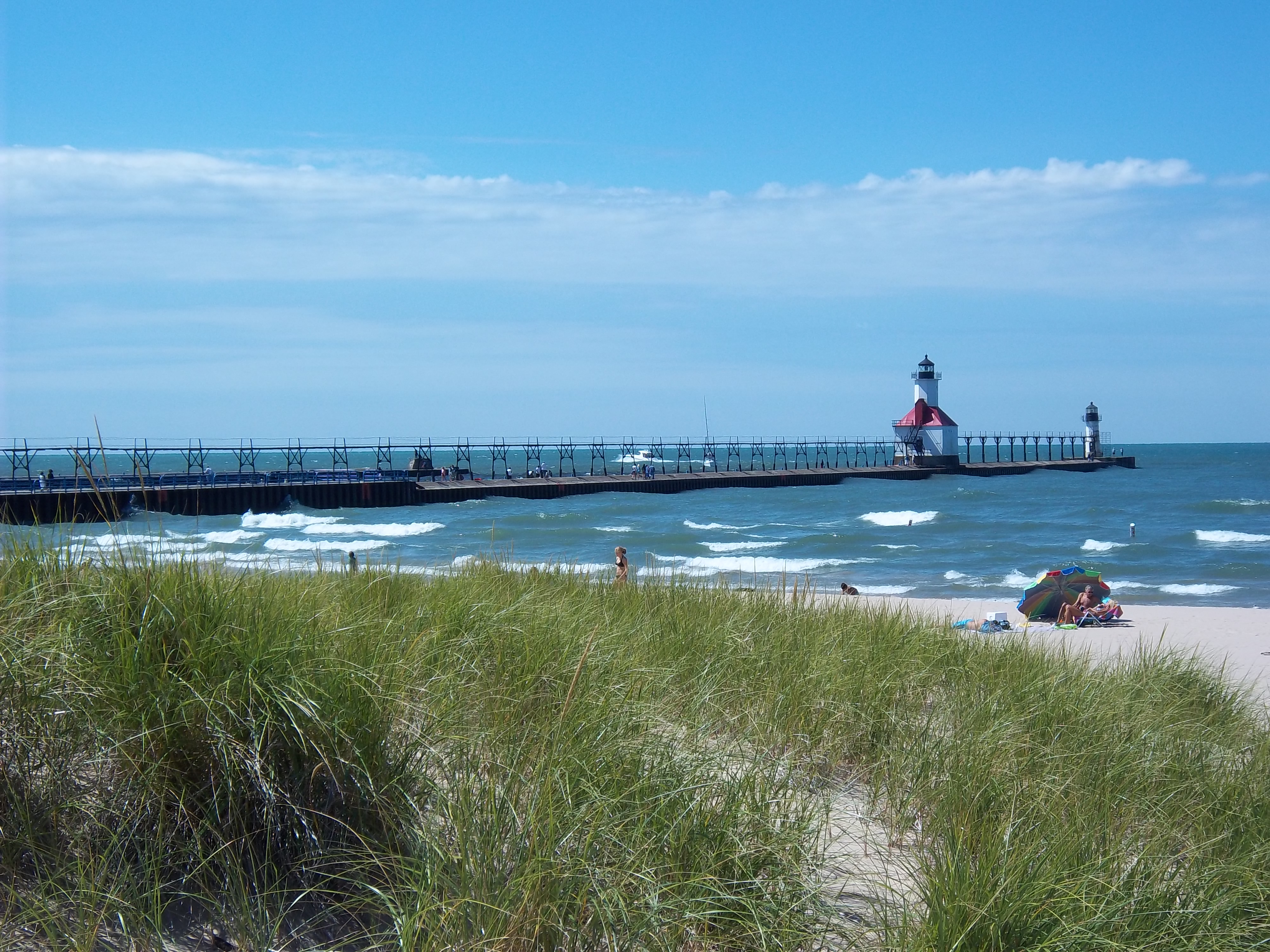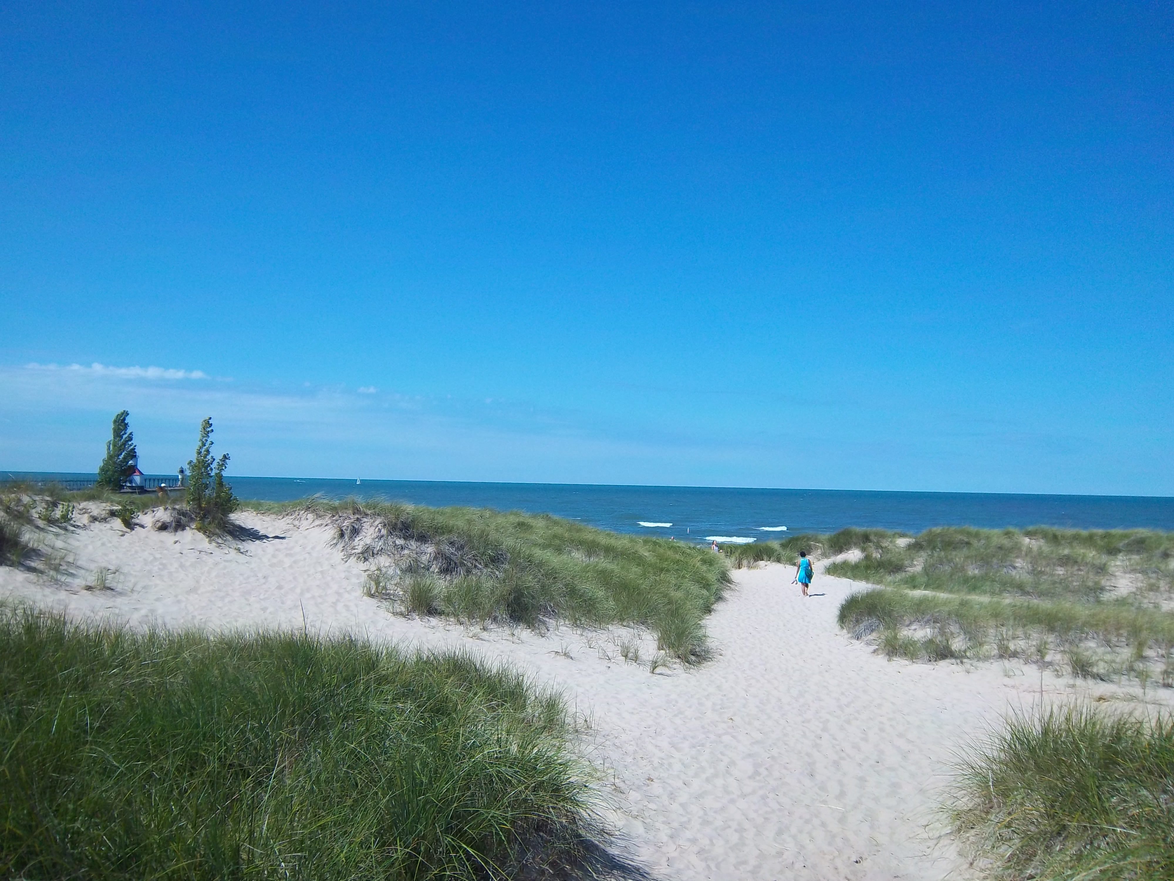 湖沿いに多くの(良質の)ビーチがあるが、そのどれにも必ずこういう灯台(lighthouse)と埠頭(pier)があると言っても過言ではない(!)。