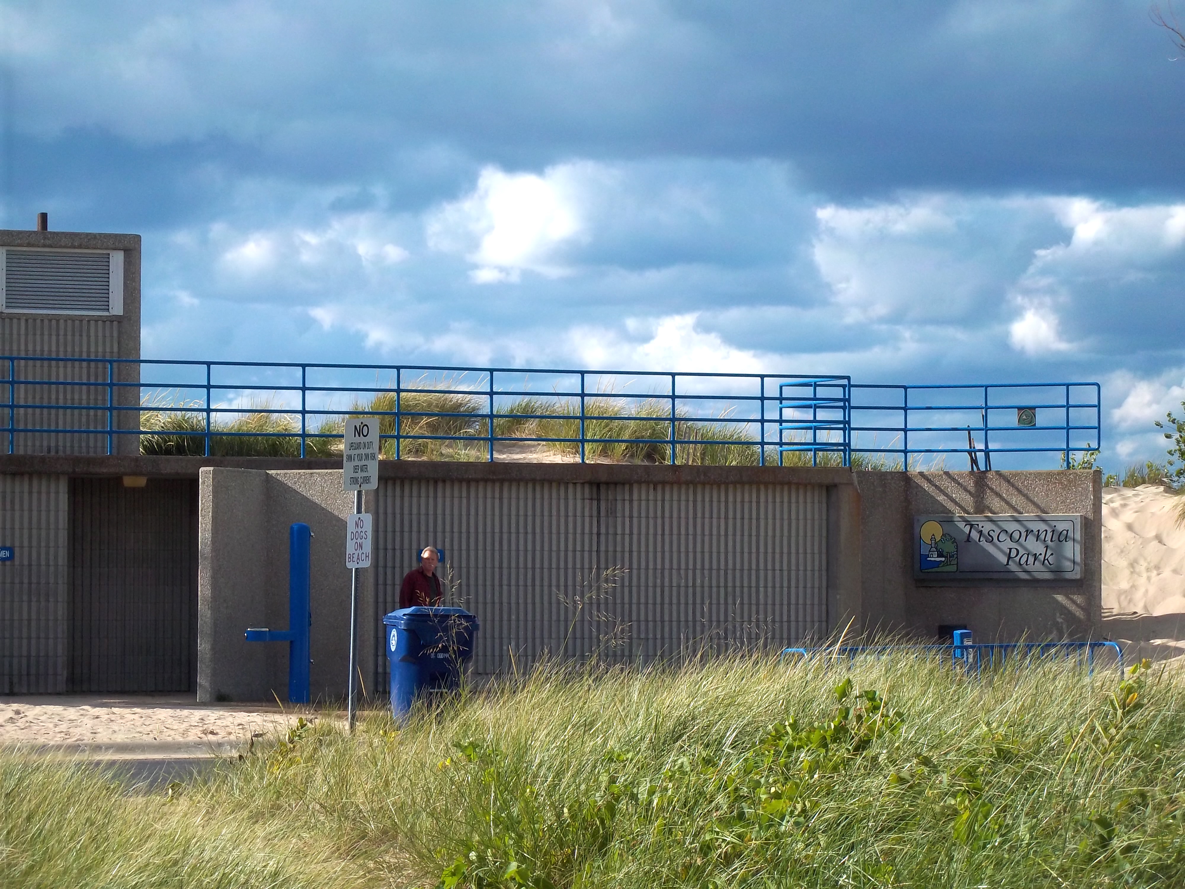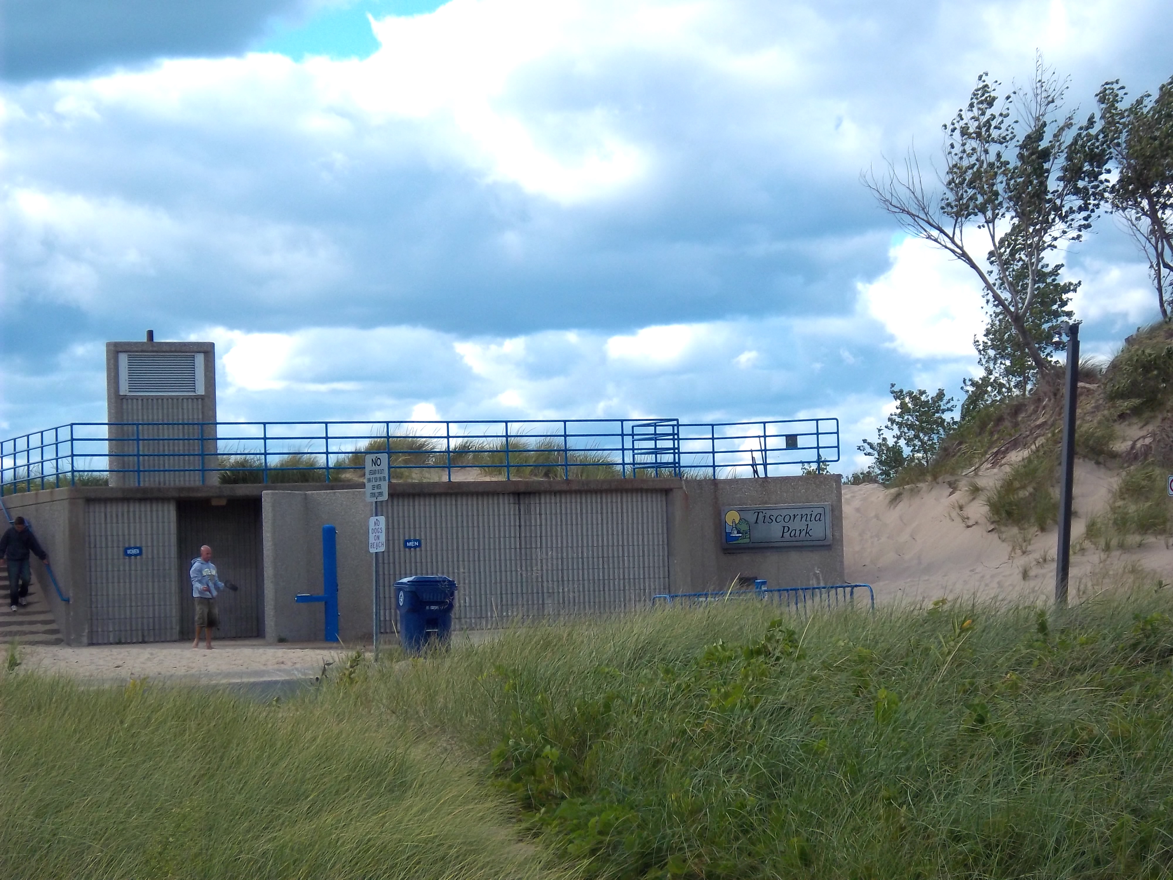 テイスコニアの駐車場に着いたら、まず目につくのがこの公衆トイレ兼更衣場。トイレは水洗でとてもキレイ。ミシガンは、高速道路のRest areasもそうだが、清潔な公共の場が多くて感心する。(ドイツ系が多いからかな?)