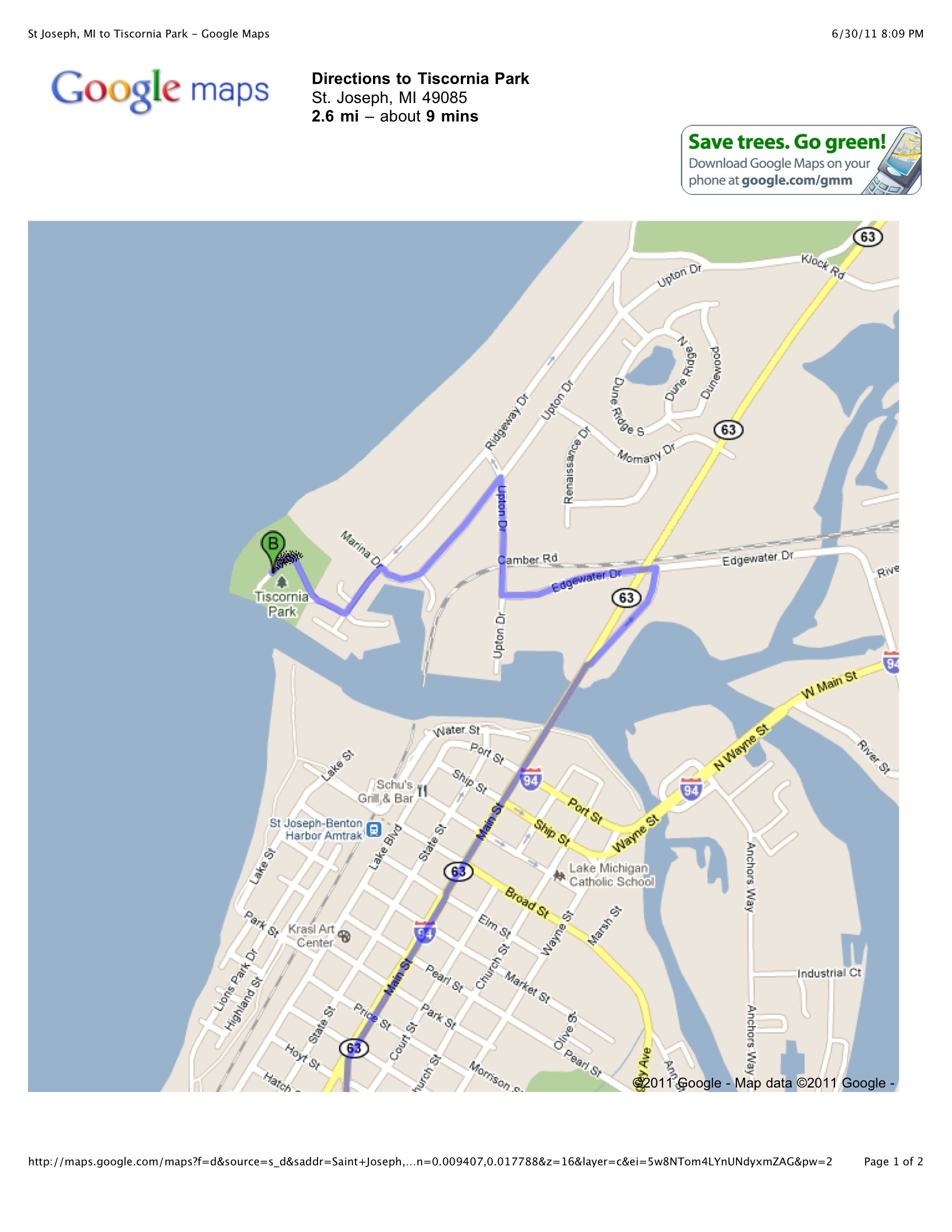 セントジョセフのダウンタウンの方から行くなら、Main St (M-63)を北に向かって、セントジョセフ川にかかる跳ね橋(drawbridge)を渡ったらすぐにM-63を下りる(rampのようになっている)。Edgewater Dr. で左折、次にUpton Dr.で右折(すると、Whirpool社が右手にある)。そしてMarina Dr.で左折(ここからレンガ道となる)、Ridgeway Dr.で左折すると、テイスコニアビーチの駐車場が左手にある。ゲートがあり、そこでお金を払う。1日で5ドル前後だったと思う(たぶん)。ダウンタウンから10分もかからない。