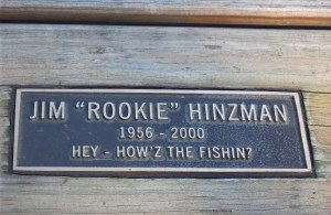 公園内のベンチのひとつ。この方は44才で早逝されたようだが、この公園での釣りがお好きだったのだろう。故人の追悼にベンチが寄付されることが多いようだが、こういうこういうユーモラスな文が託されることが多い。