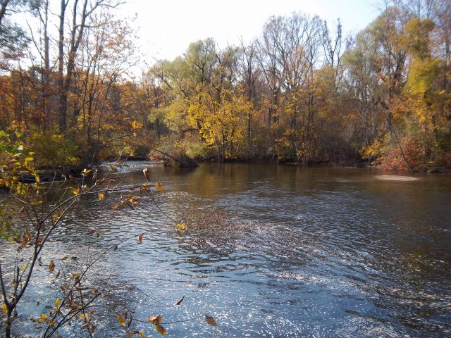 Murmuring sound of a small river – This is Huron River. It flows through Hudson Mills Metropark, Ann Arbor, many other towns, and then flows into Lake Erie. It’s like a mighty river for Southeastern Michigan. The upstream flows through Kensington Metropark, I believe. So, Huron River is really never a small river, but it is when it flows through Hudson’s Mill.