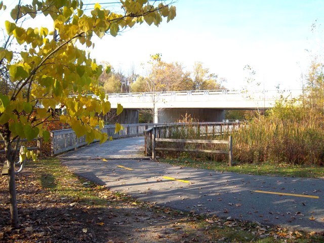 Go down the trail. There is more walking trail. The bridge above is N. Territorial Rd.