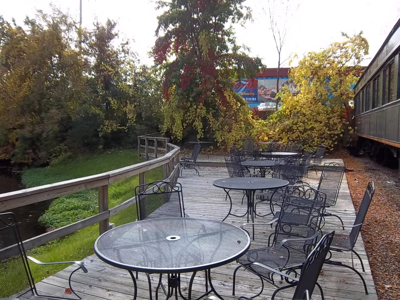 On the left, there is an old train car – it’s a 1914 railroad passenger rail car of Grand Trunk Railroad company which used to operate in this region from mid-19th century to early 1920s. You can rent this car for a private party – that should be fun.