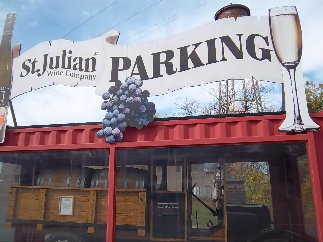 Warner’s competitor, St. Julian, is also on the same street – in fact almost next door to Warner. Feeling good after wine-tasting and walking in the serene and pretty garden, I came out to the busy Kalamazoo Street. I walked on the street a little towards south. Then this very entertaining St. Julian’s parking sign appeared on the right.
