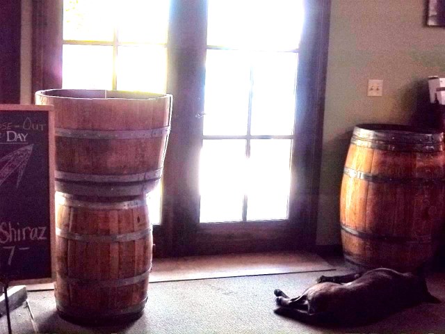 ワイナリーの飼い犬なのか、ふいとヨタヨタ現れ、入口の傍で人目構わず、人の出入りに構わず、お昼寝を始める。zzzzzz