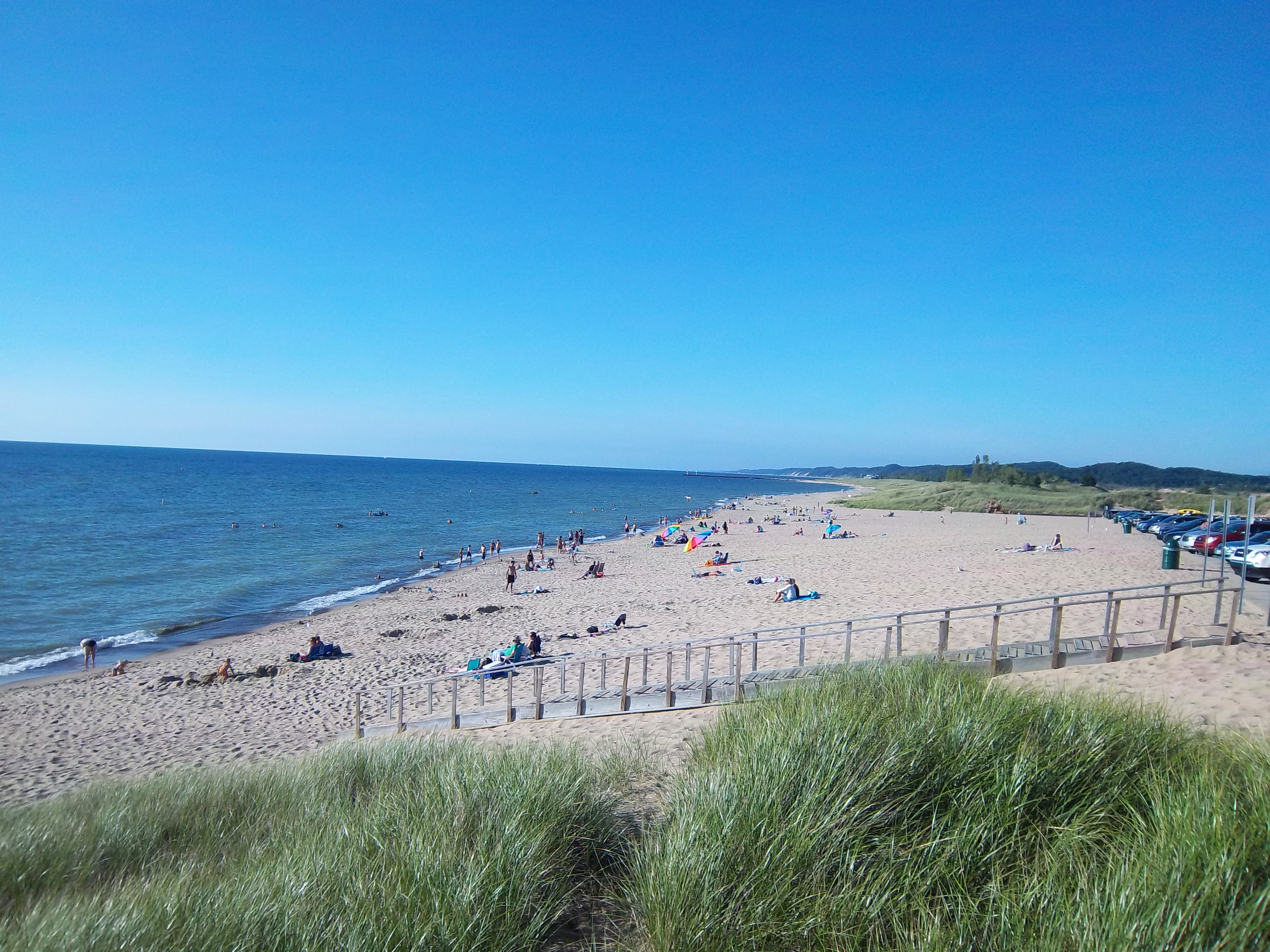 私自身は、ヒューロン湖(Lake Huron)よりミシガン湖の方が好き。スペリオル湖(Lake Superior)は水が冷たすぎるので言語道断(これ、私の独断と偏見なので、ヒューロン湖やスペリオル湖が好きな人は、気を悪くしないで)。ミシガン湖畔には良いビーチがたくさんある。水も砂もきれい。のったりした空気が漂っていて、夏の気分になれる。