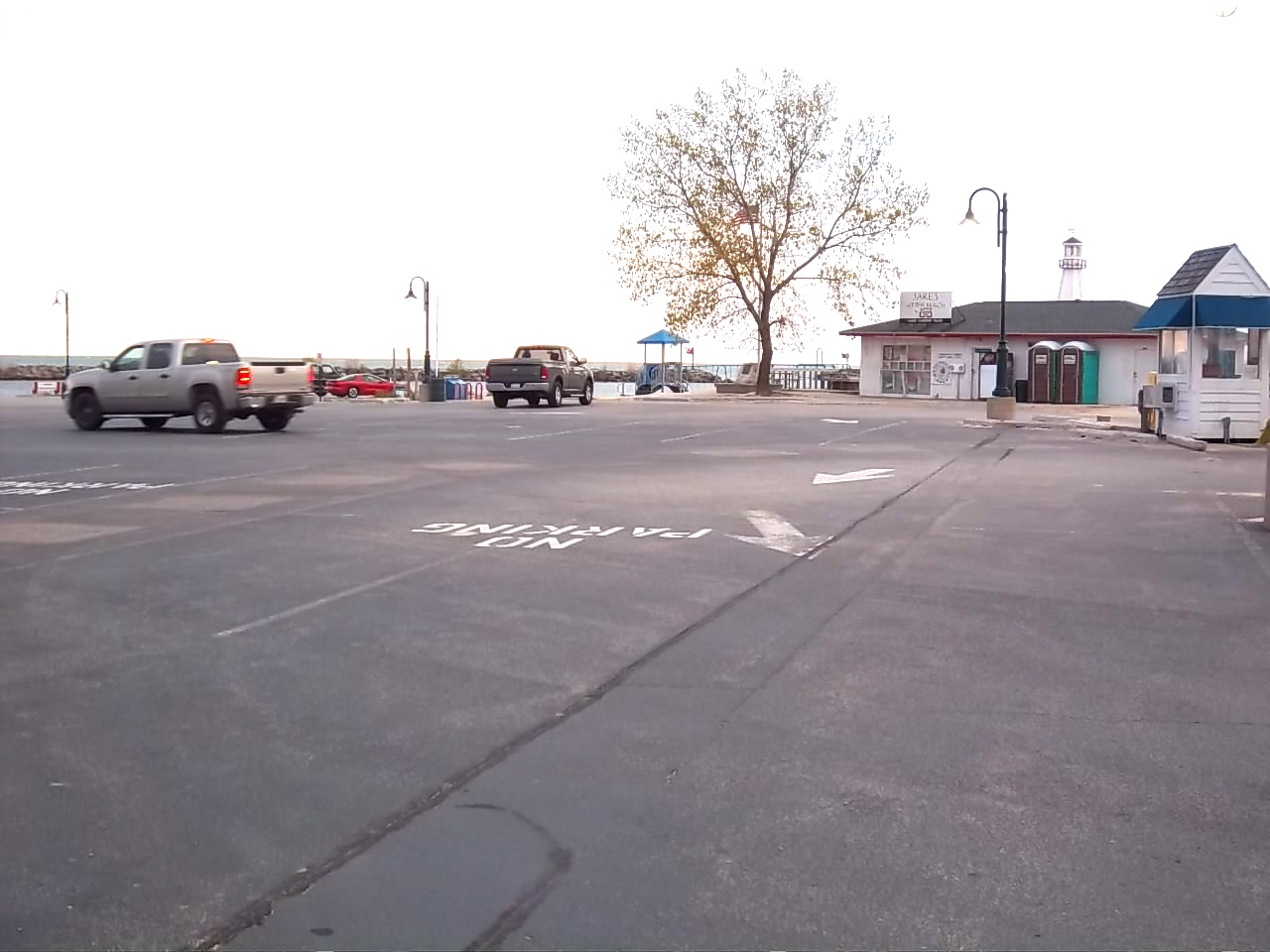 高速を下りたら、基本的に主要道路はひとつしかない(LaPorte Road。ダウンタウンに近づくと、Whittkaer St.となる)。それを湖の方向にまっすぐ行けば、ダウンタウンを突き抜けて、このビーチにすぐ着く。