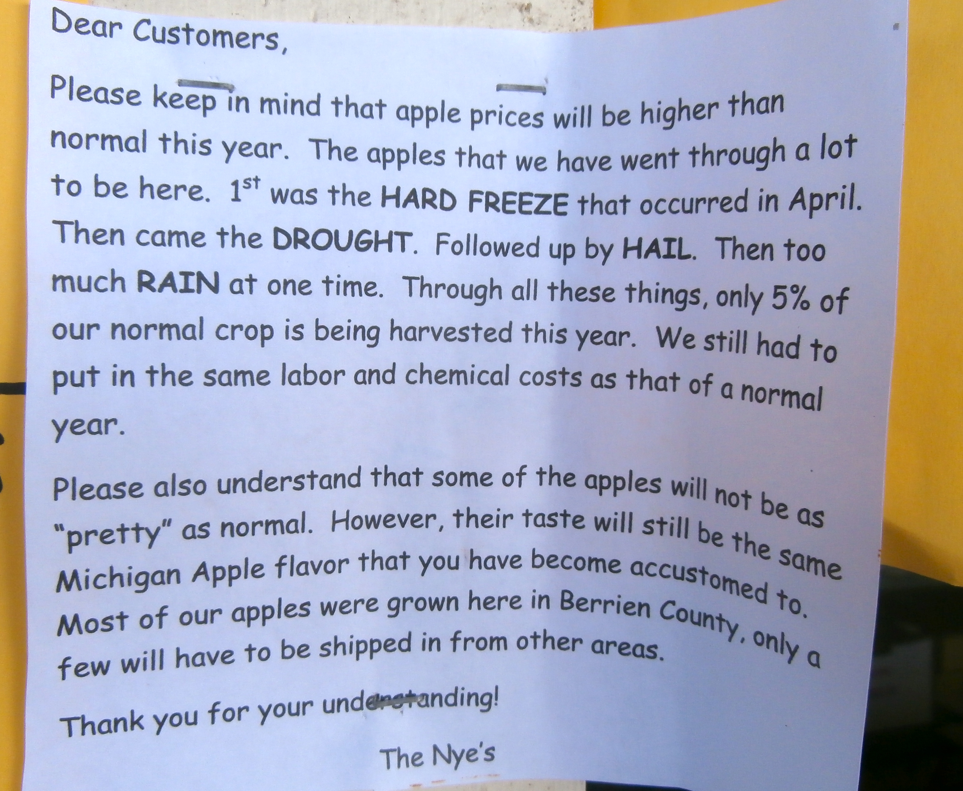 Wiard’s Orchardだけではない、リンゴの大被害はミシガン州全体におよび、今年はリンゴ狩り(apple picking)をできない所が殆どだそうだ。