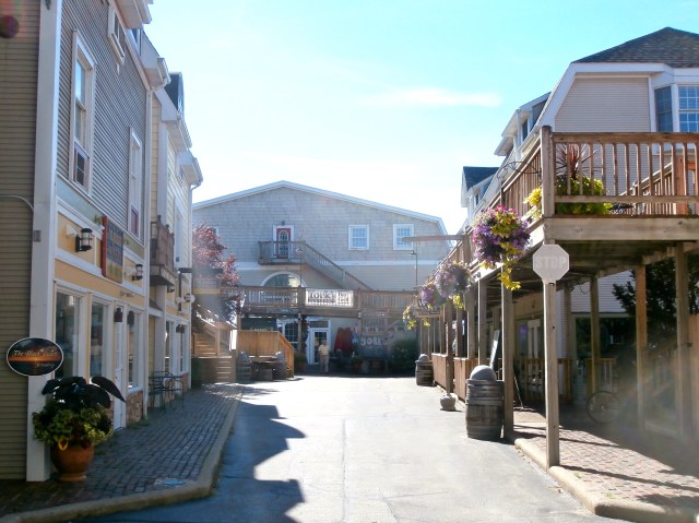 ニューイングランド風の建物(だそうだ)が立ち並び、石(cobblestone)を敷き詰めた舗道、木の階段、桟橋。