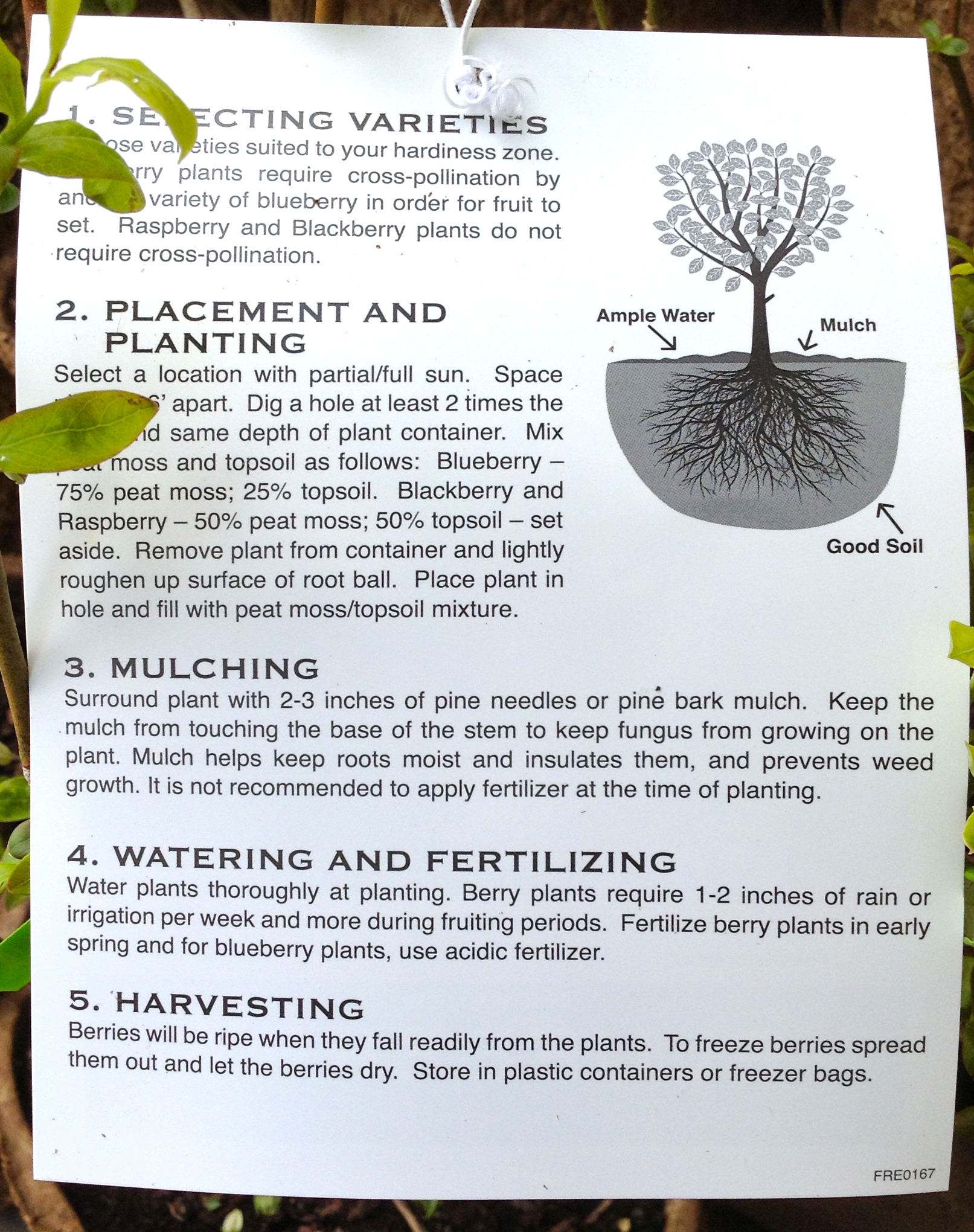 ブルーベリーは酸性土壌(pH 4.5-5.0) を好むので、ピートモスを使うことが非常に大事だそうだ。ピートモスを混ぜる事で土壌の酸性度を上げられる(lower the pH by using peat moss)。