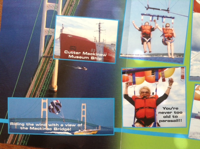 これは、私も、すごくやってみたいと思う。拾ってきたパンフレットにも、「You’re never too old to parasil!!」とあることだし(笑)。