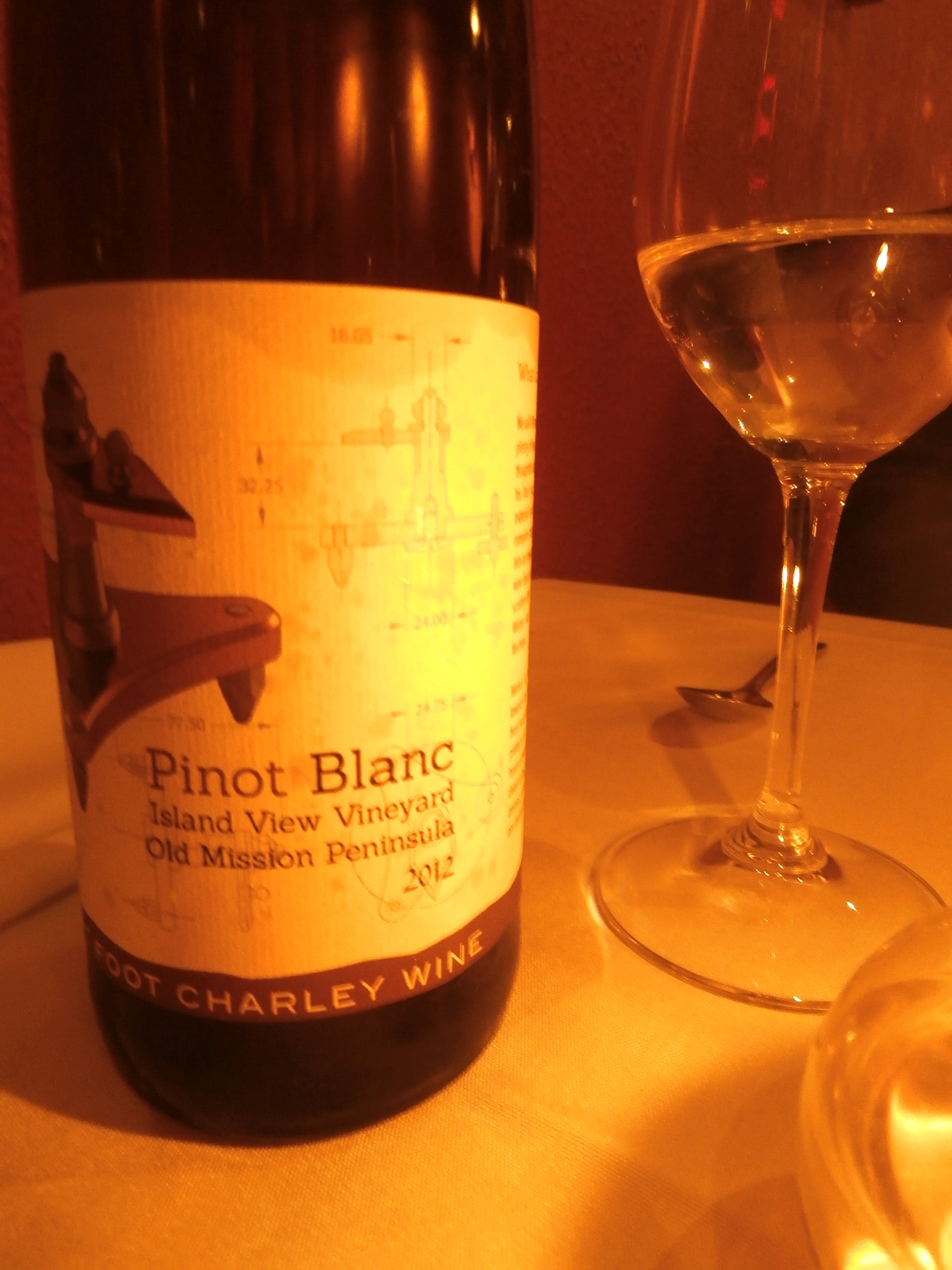 この50ドルの白ワインは、北ミシガンはトラバースシテイ(Traverse City)にあるOld Mission Peninsularという半島にあるワイナリーのワイン。この半島がワイナリーで有名なのは、ご存知ですね!