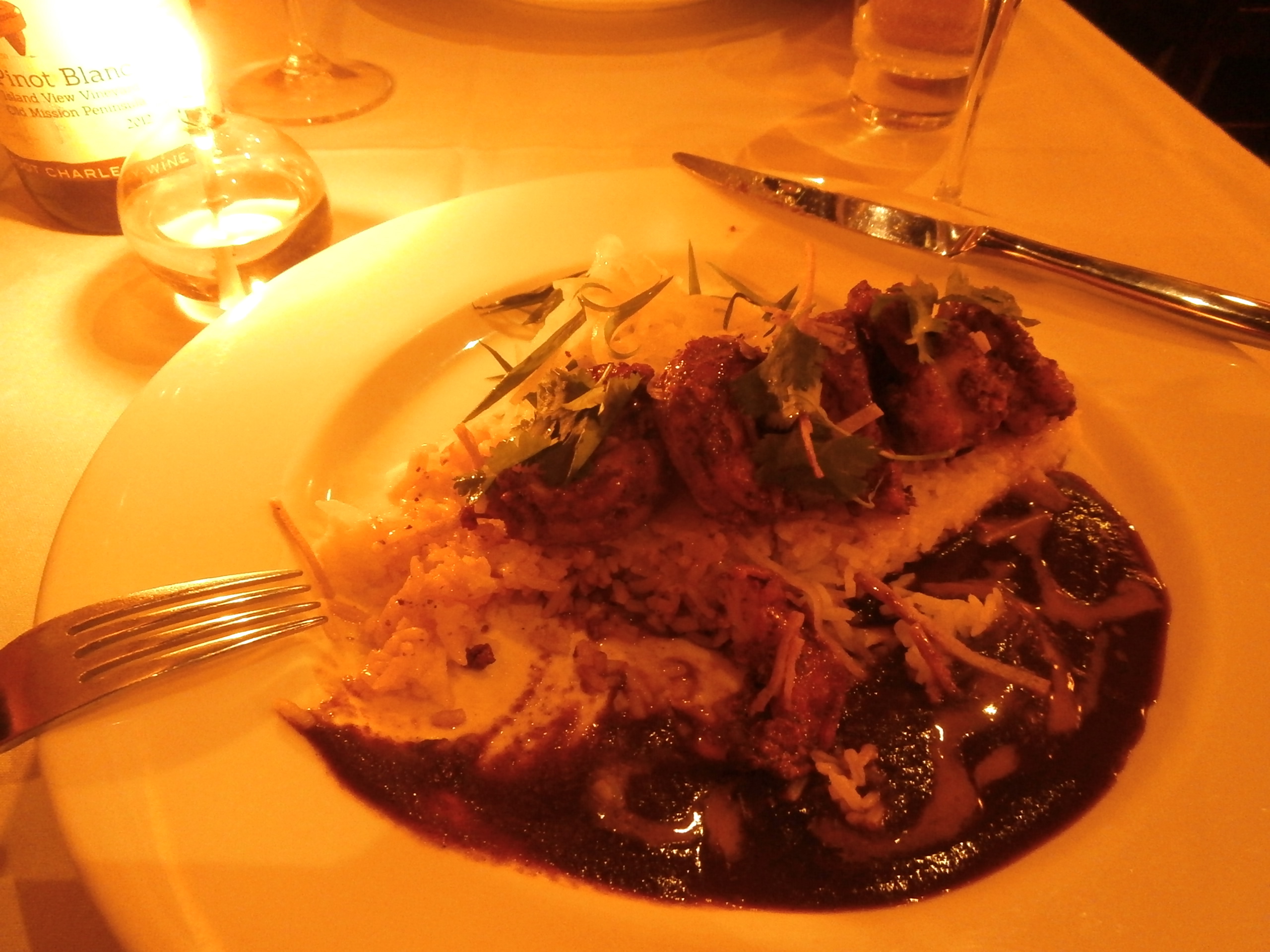 メニューには、「duck leg」や 「camaron with Yukatan spice rub」、「Moroccan Hen with cuscus」などなど、興味をそそるものが並んで、選ぶのに悩む。