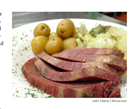 巷の多くのレストランやパブでは、コーンビーフ(corned beef) やキャベツ、ゆでジャガイモ(boiled potatoes)といったアイリッシュなお料理がメニューにお目見えする。