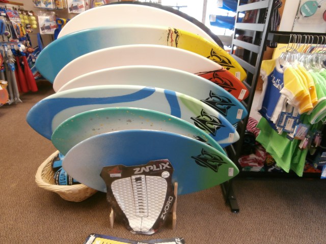 ところで、St. Josephには、もうひとつこの種のお店がある。「Outpost Sports」というお店。そのお店の中の写真です。これらは、bodysurfing用の小さなボードですね。なかなか、よだれ?が出そうでしょう。