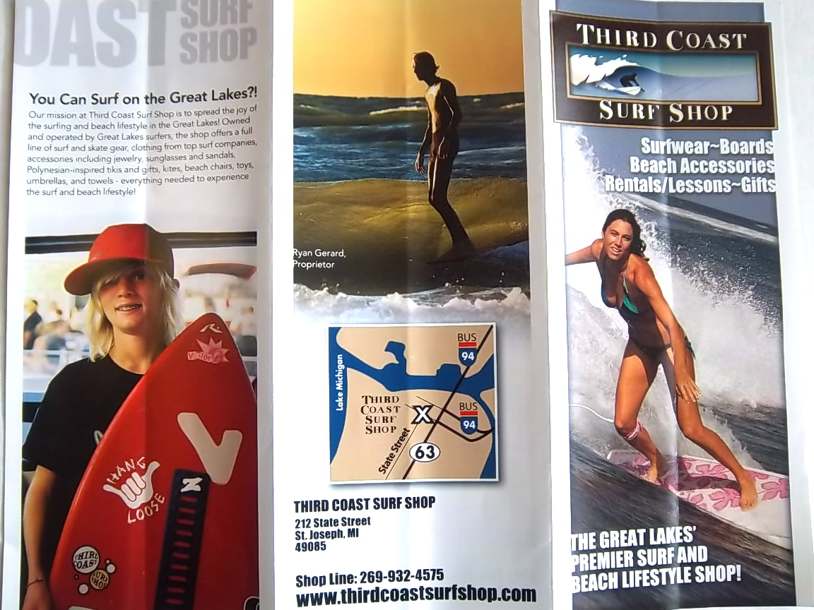「Third Coast Surf Shop」というサーフィン専門店が、ミシガン湖畔の町ニューバッファロー(New Buffalo)とセントジョセフ(St. Joseph)にあるが(右の写真はセントジョセフのお店)、その二つのお店のオーナーのお兄さんが、「第3のコースト」サーファーの一人。