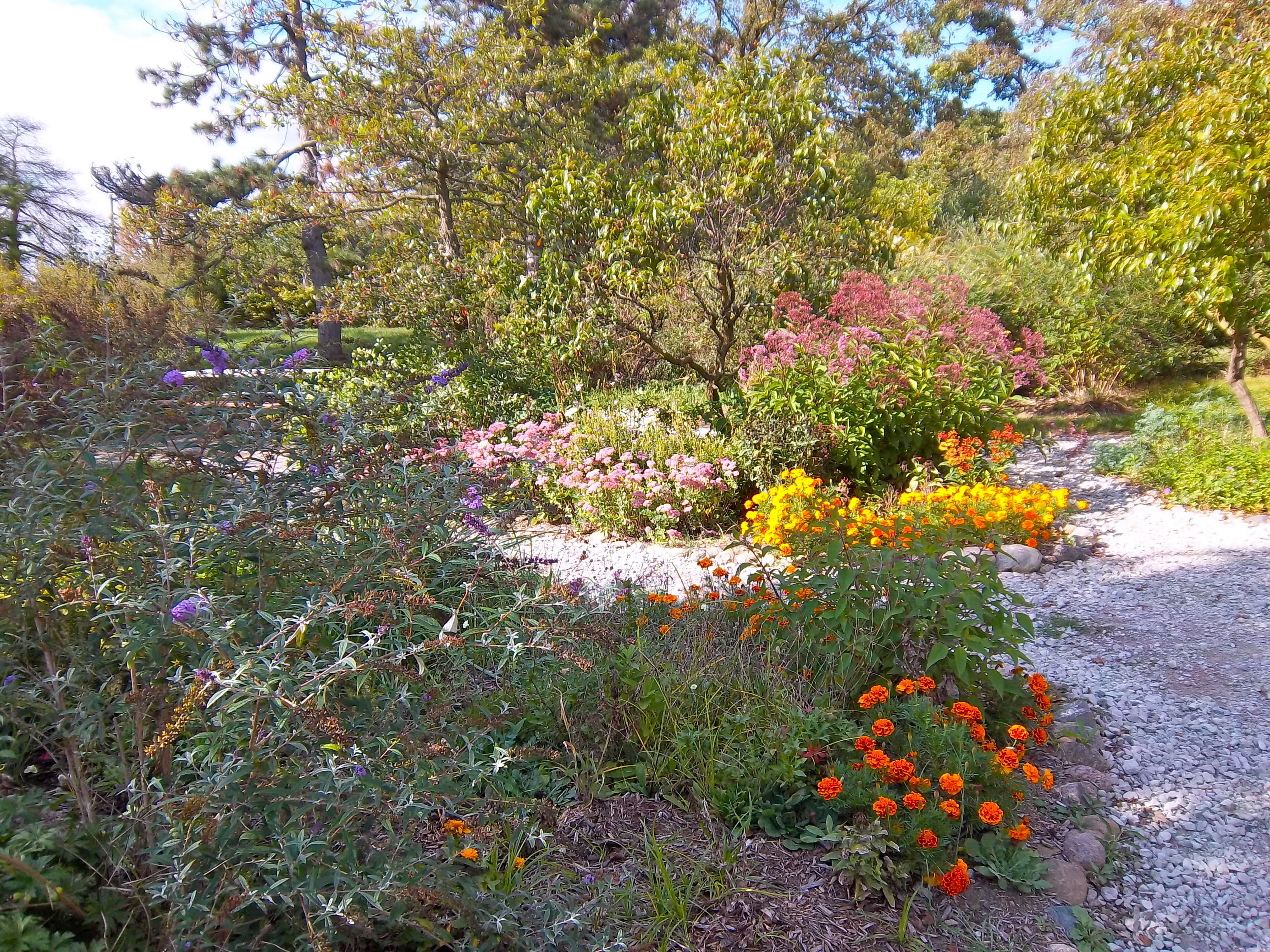 「蝶とハミングバードの庭 (Butterfly and Hummingbird Garden」というのもある。公園の入口から左手に歩いて行くと左側に、ひっそりとある。小さなお庭だが、いろんな種類の花が咲き乱れ、ほんとに蝶々が花から花へと舞っている、秘密の花園!