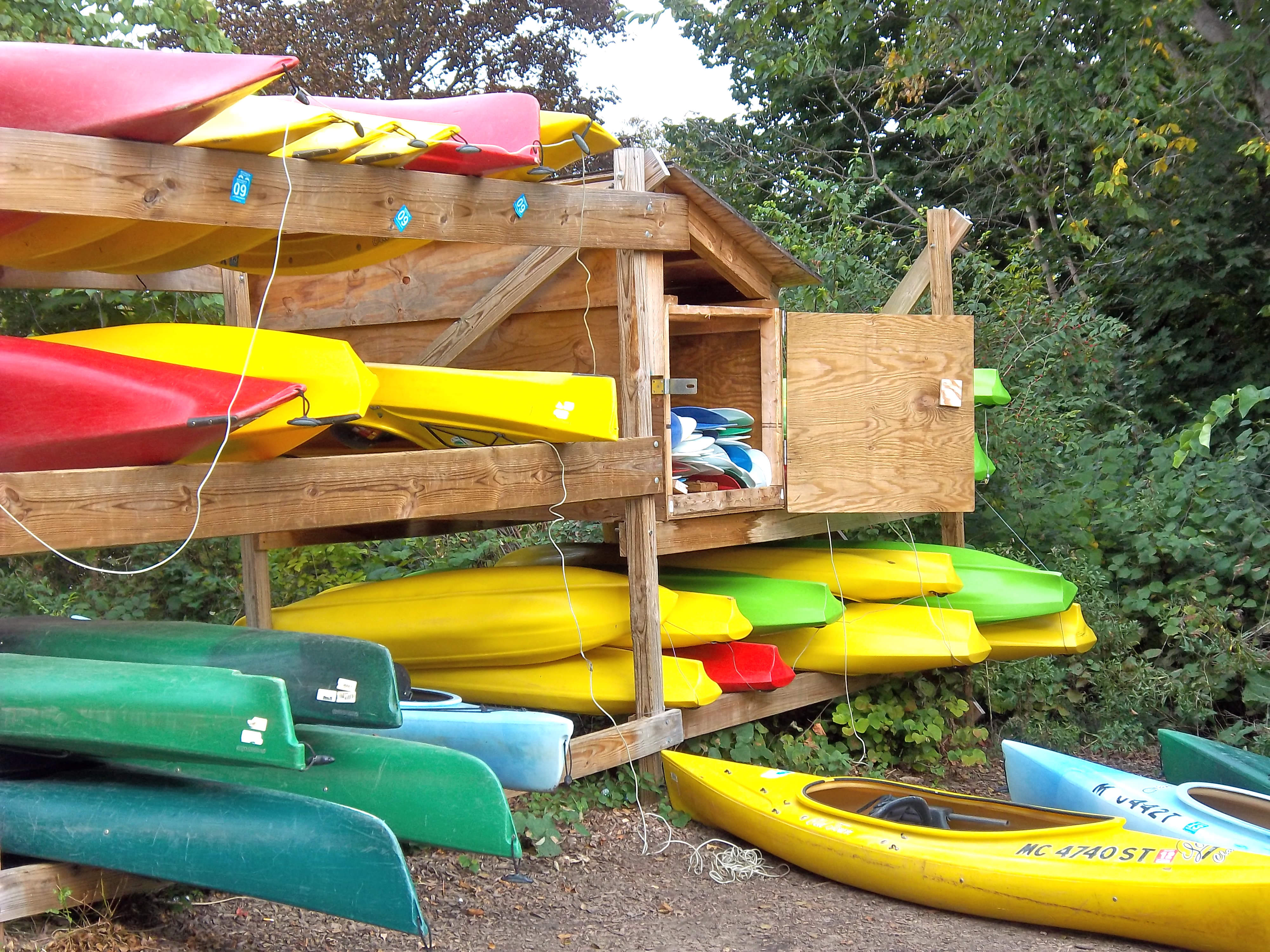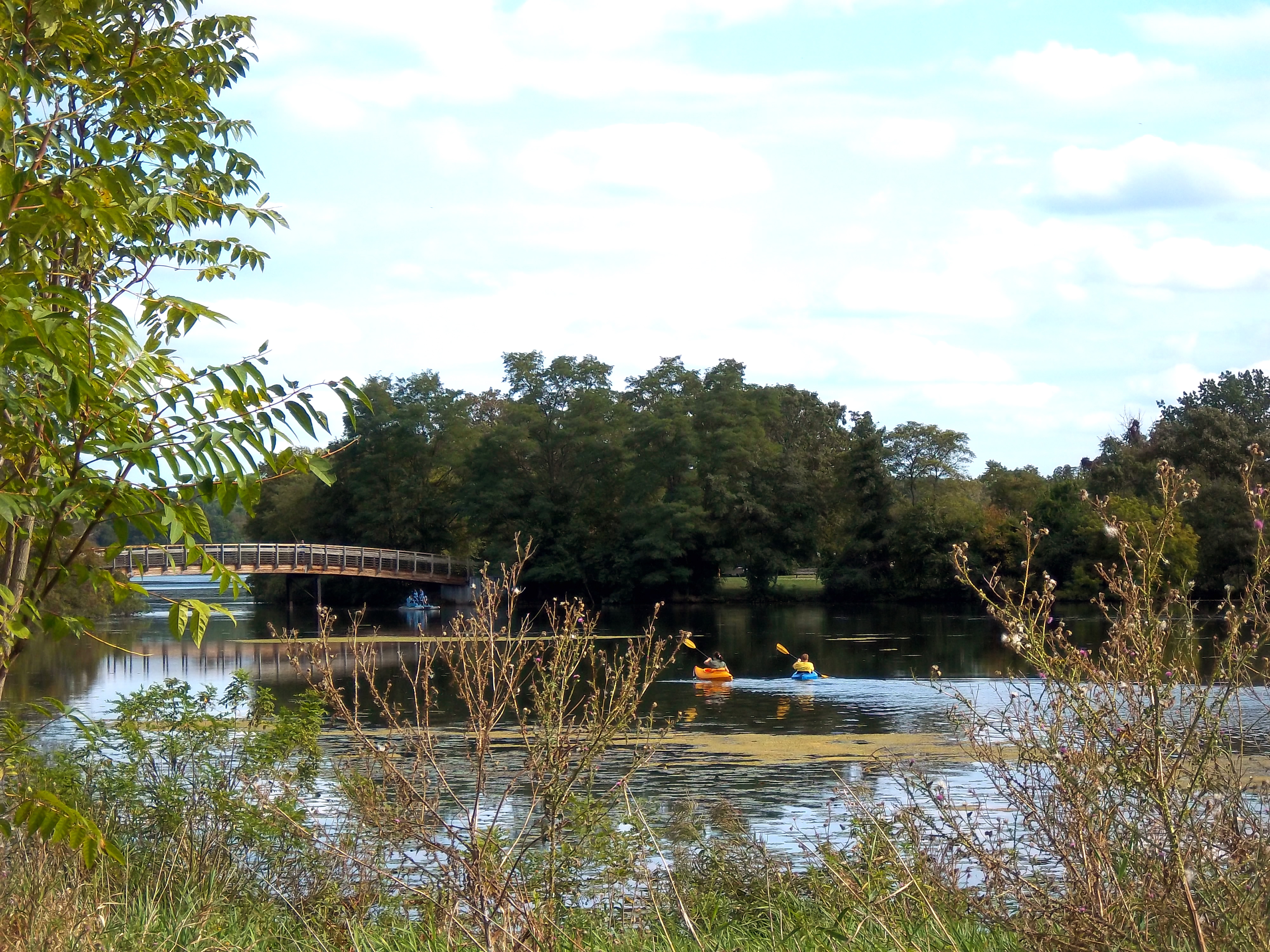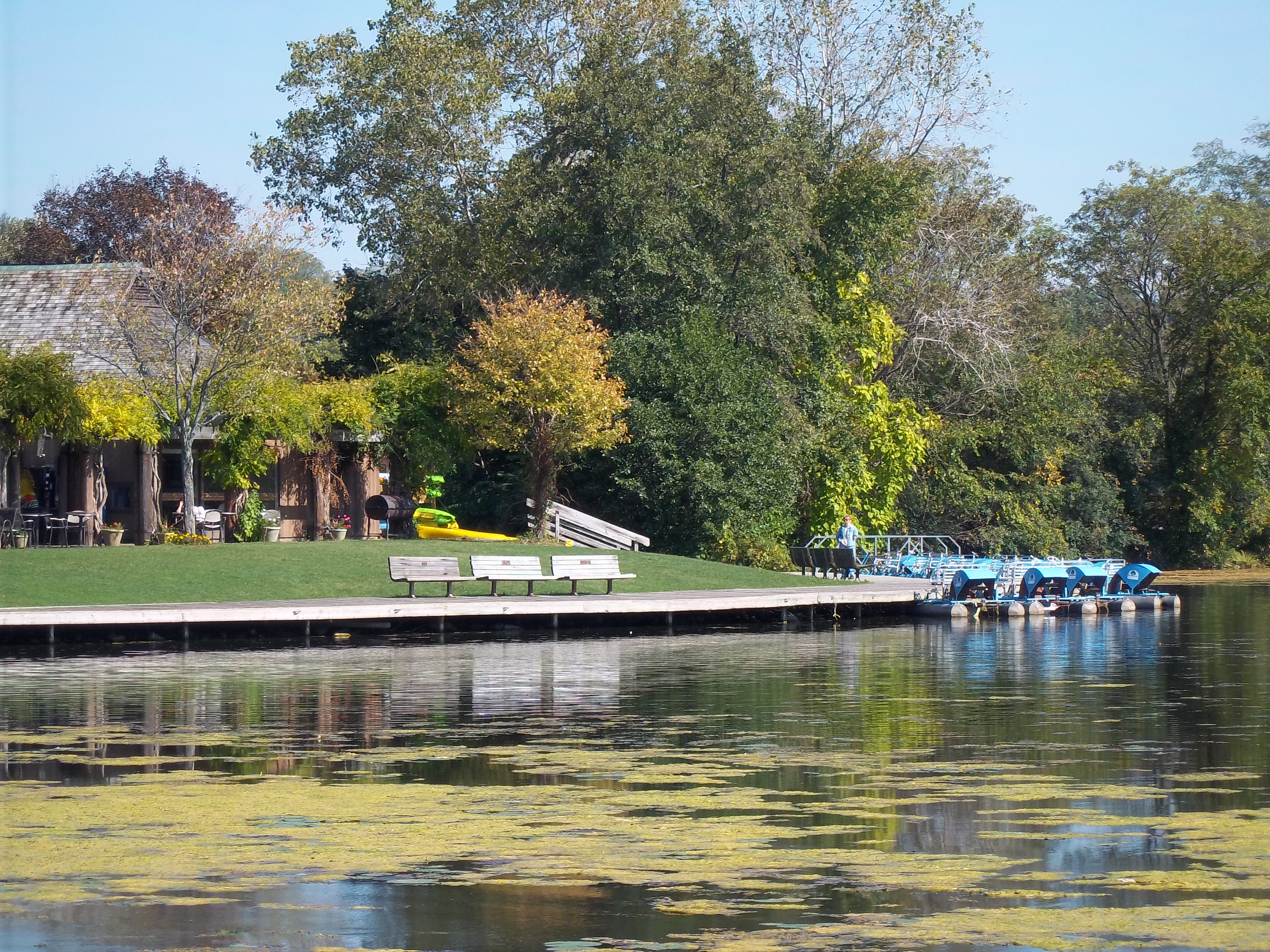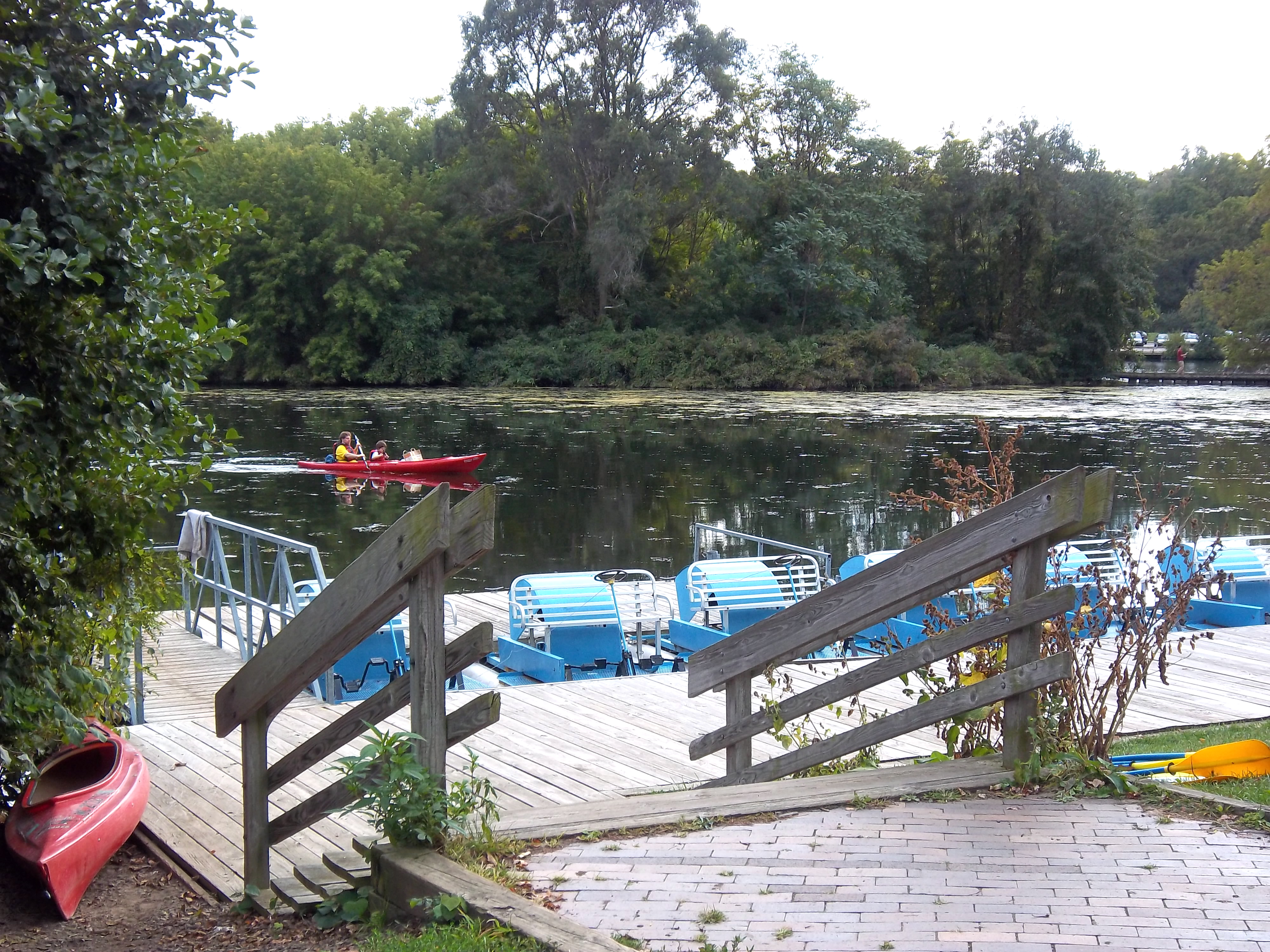 The Gallop Park Livery has canoes, kayaks, and paddle boats for rental. Kids love paddle boats (light blue thins on the left). The website of the livery is