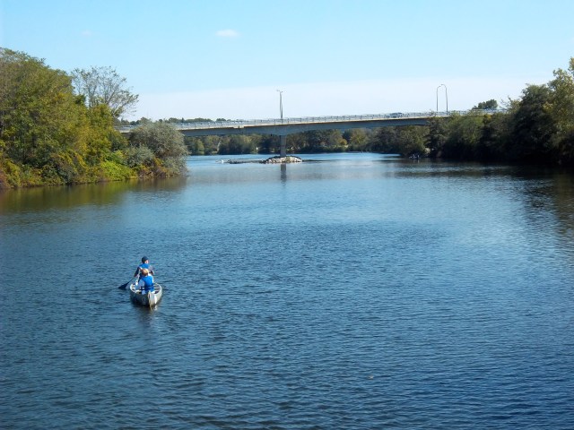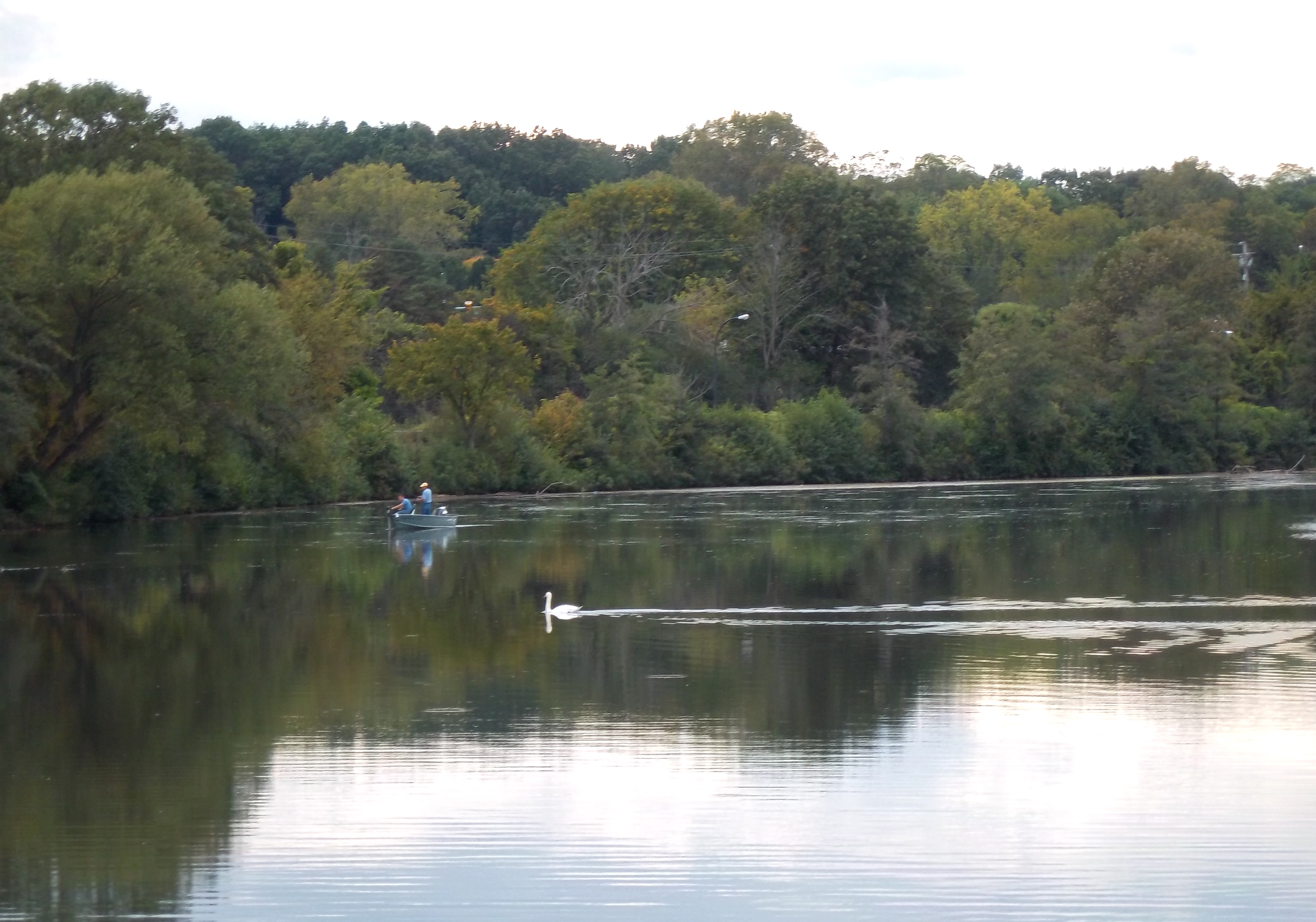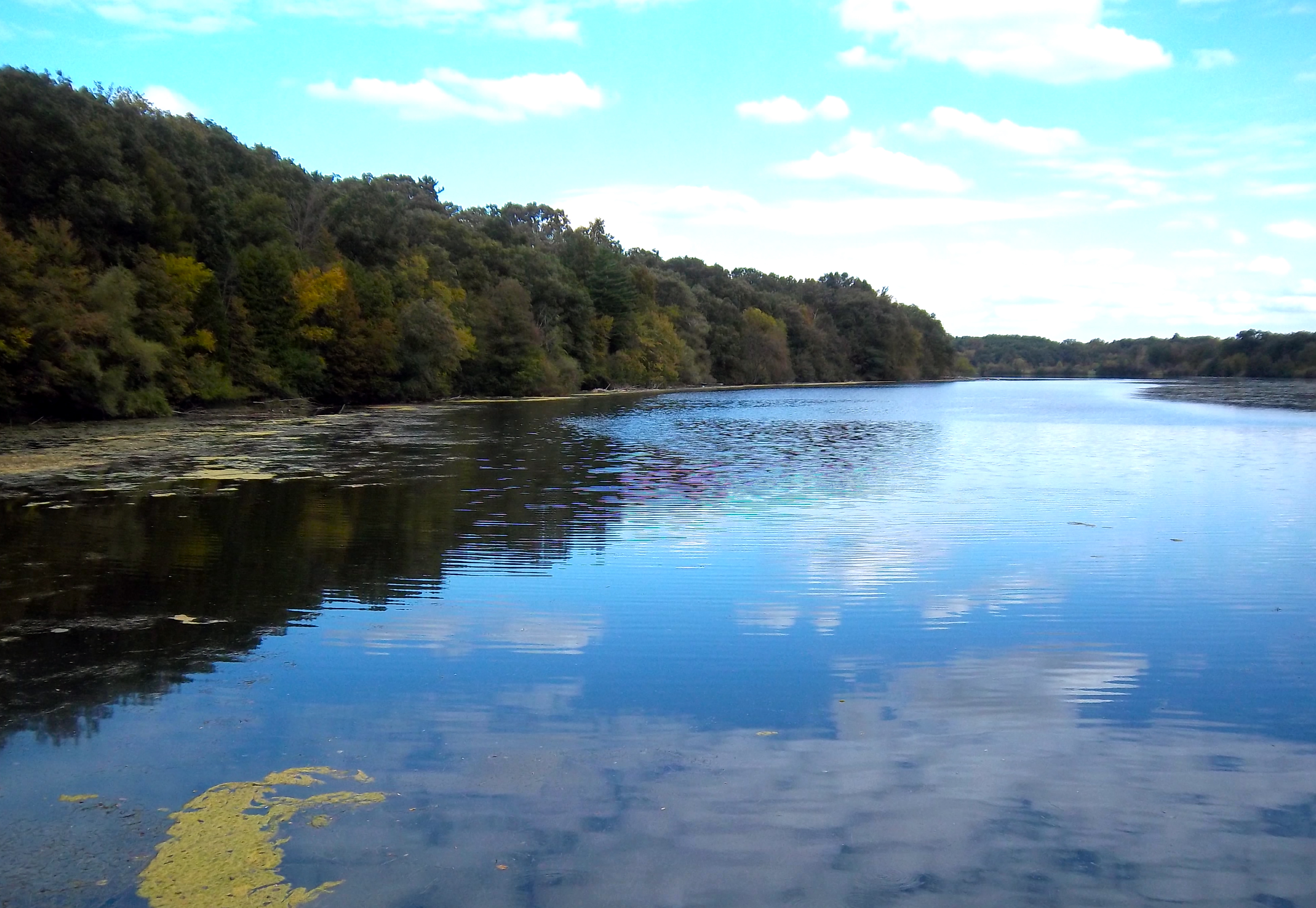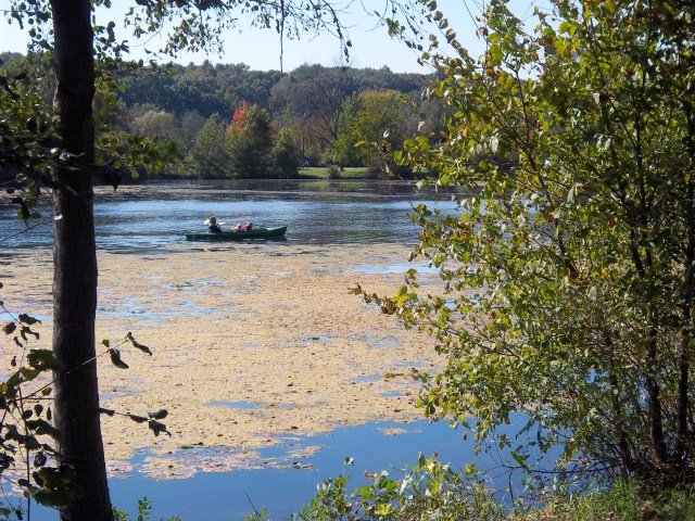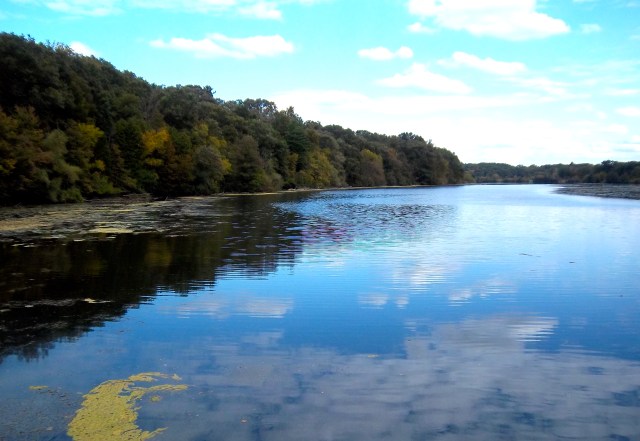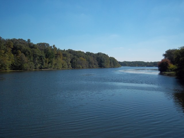 View of Huron River from the bridge. The dam (Geddes Dam) is at the end of this stream.