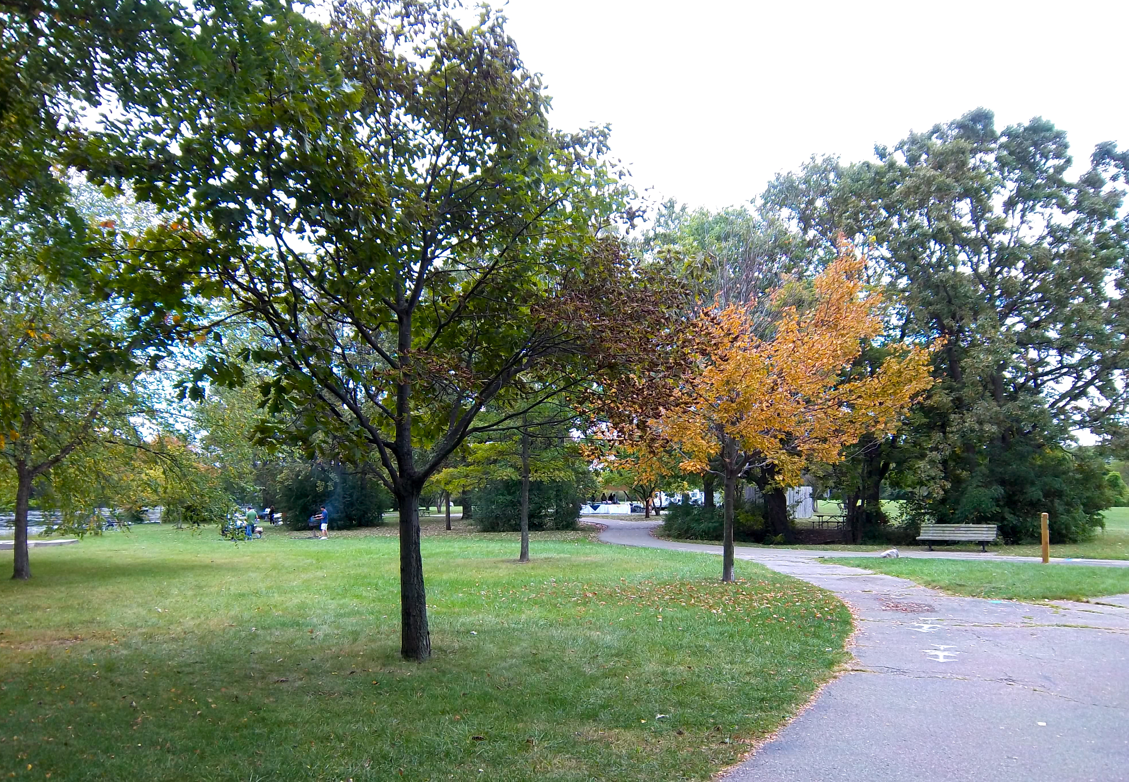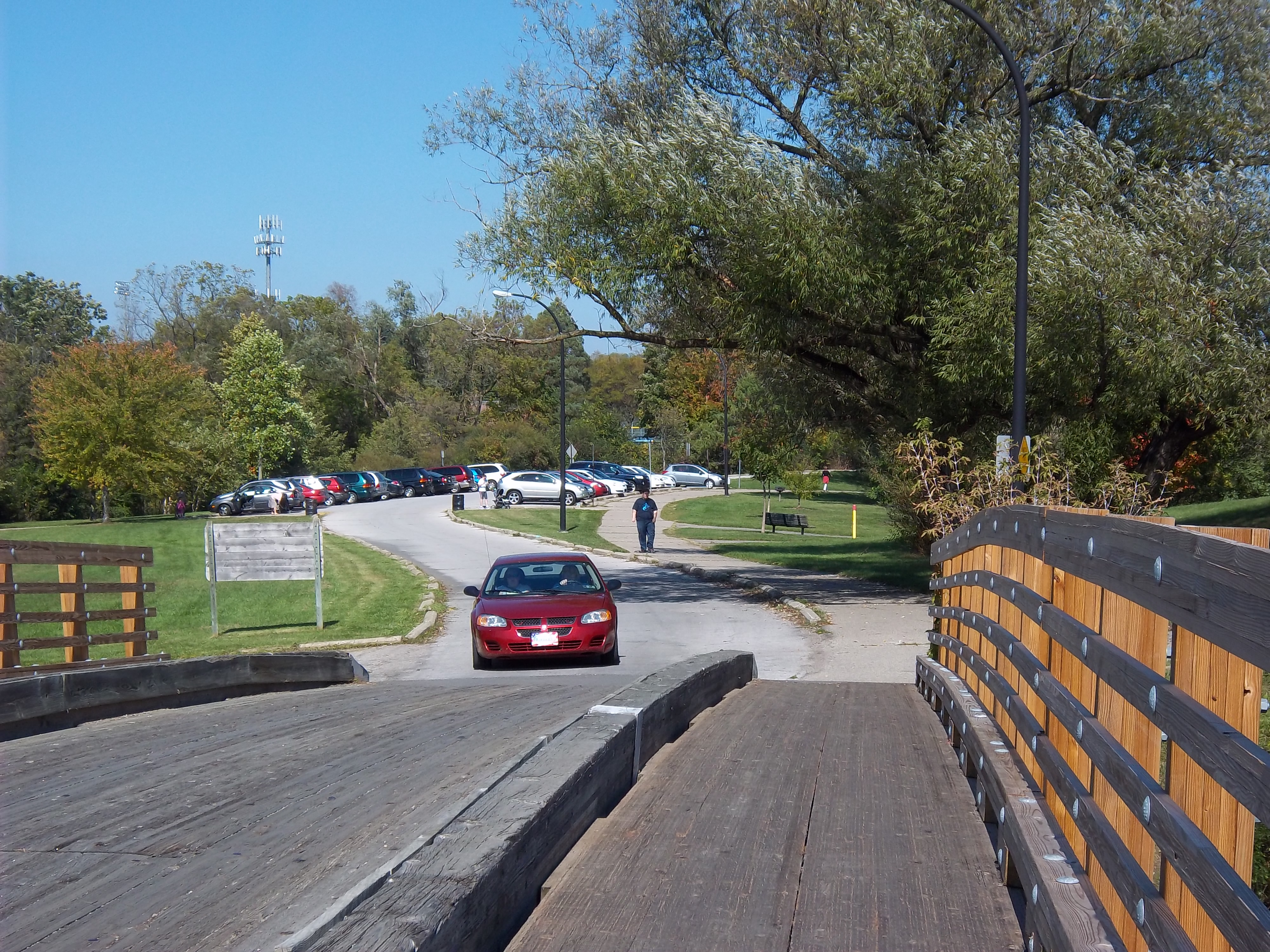 Gallop Park has two entrances. This is not the main one. If you want to bring your own boat, canoe, and/or kayak, you want to come in from this entrance, which is located to the east of Huron Parkway. The main entrance is to the west of Huron Pkwy. I don’t own a boat or anything, but I usually park my car here. The parking is never full here.
