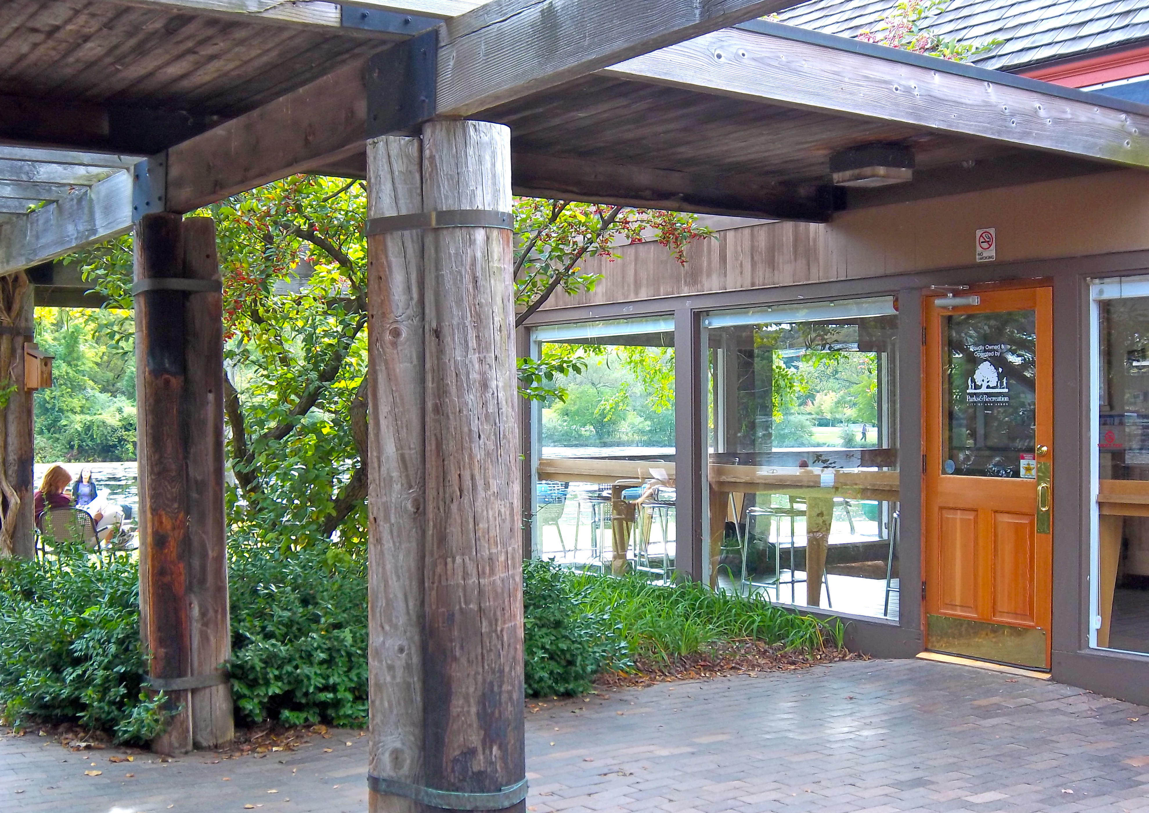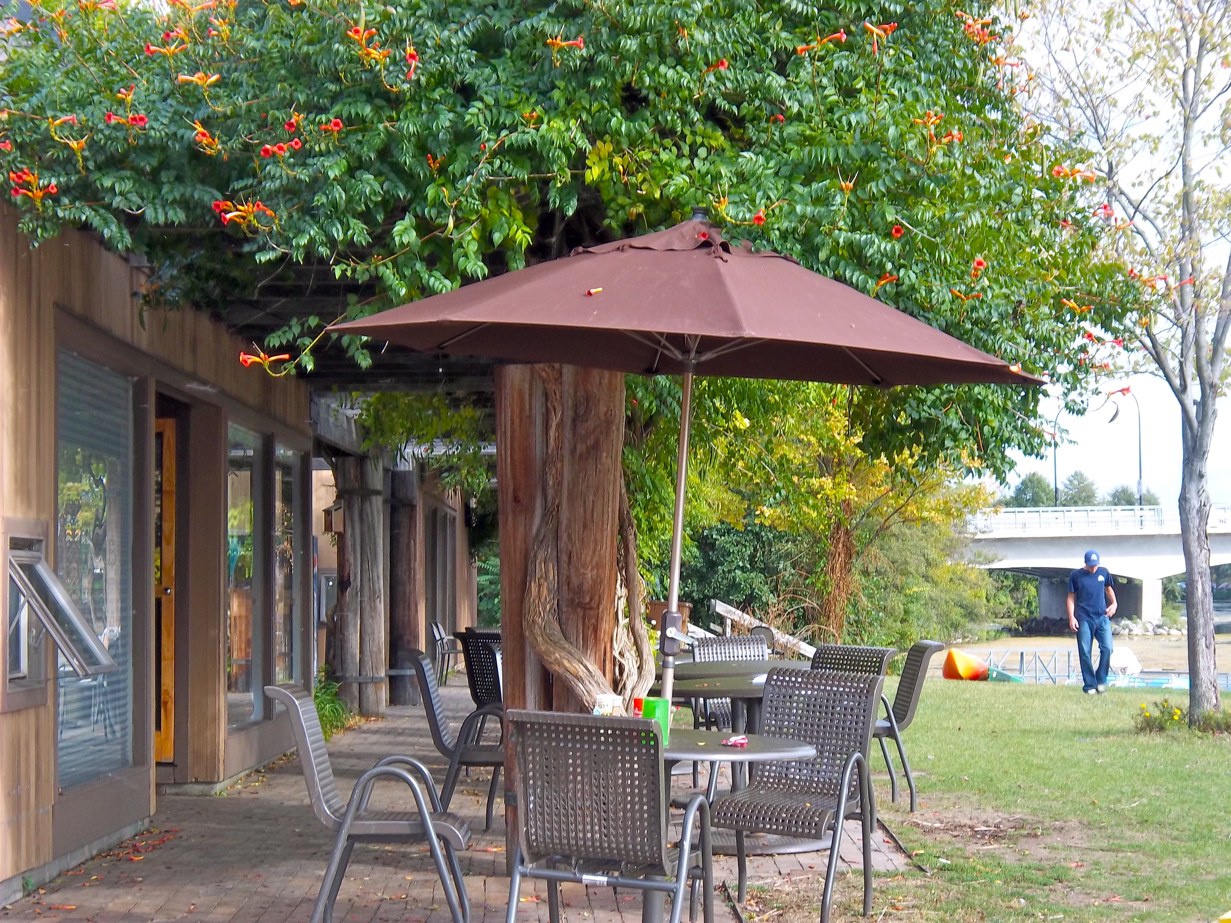 There is a cafe at the Livery. They have patio tables outside in spring – autumn.