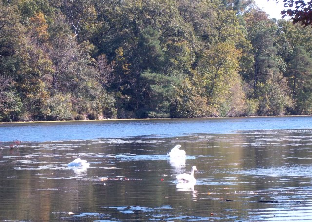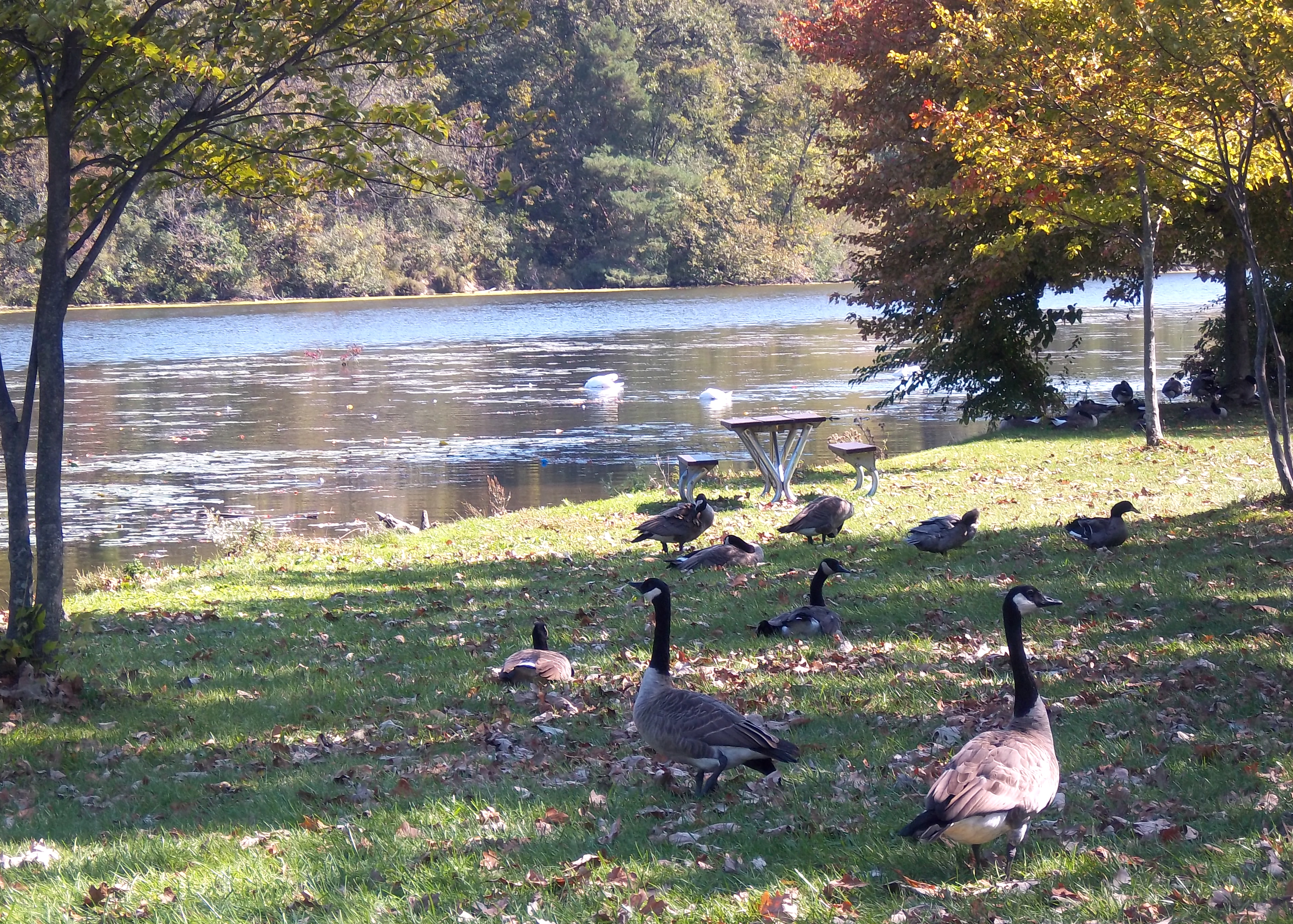 この公園は、いつも、ガチョウ (geese)がやたら多い。人をなめたような太々しい態度が、時々腹立つ。 あまりの多さに、公園の散歩道は時として、ガチョウのフンだらけになった時代があったが、最近は、管理局が清掃に力を入れているのだろうか、あまり目にしなくなった。 人間は自分たちを絶対に攻撃しない、と信じ込んでいるフシがある。何を根拠にそんなに人間を信用できるのかよく分からないが、 それを悪用(?)してガチョウを殺してご飯のおかずにする人もいそうだ(現にそうした人を私は知ってる)。