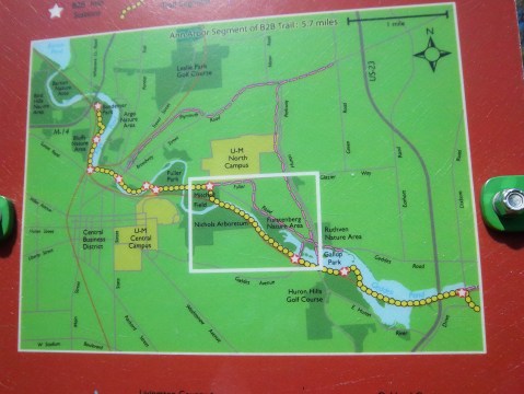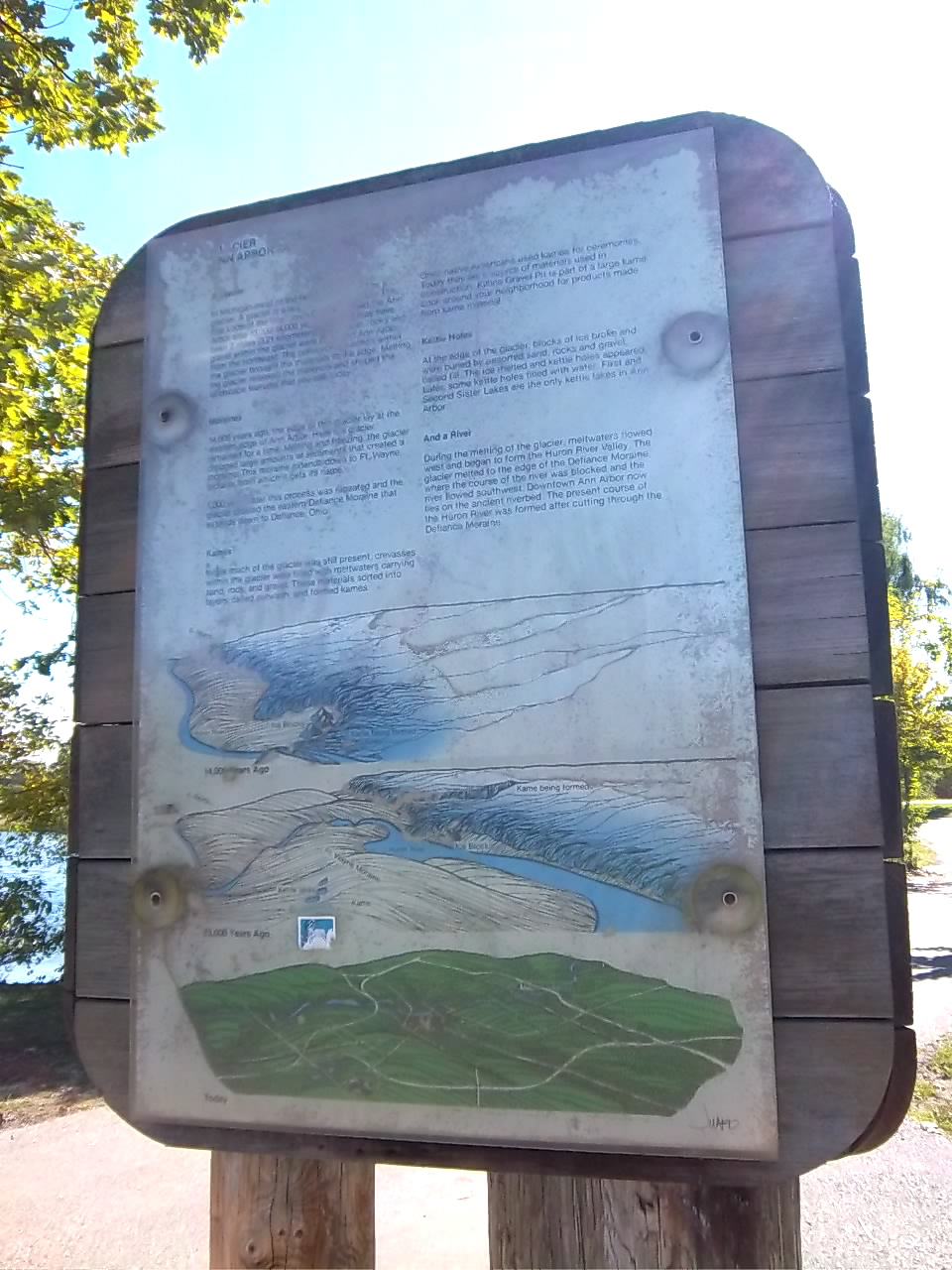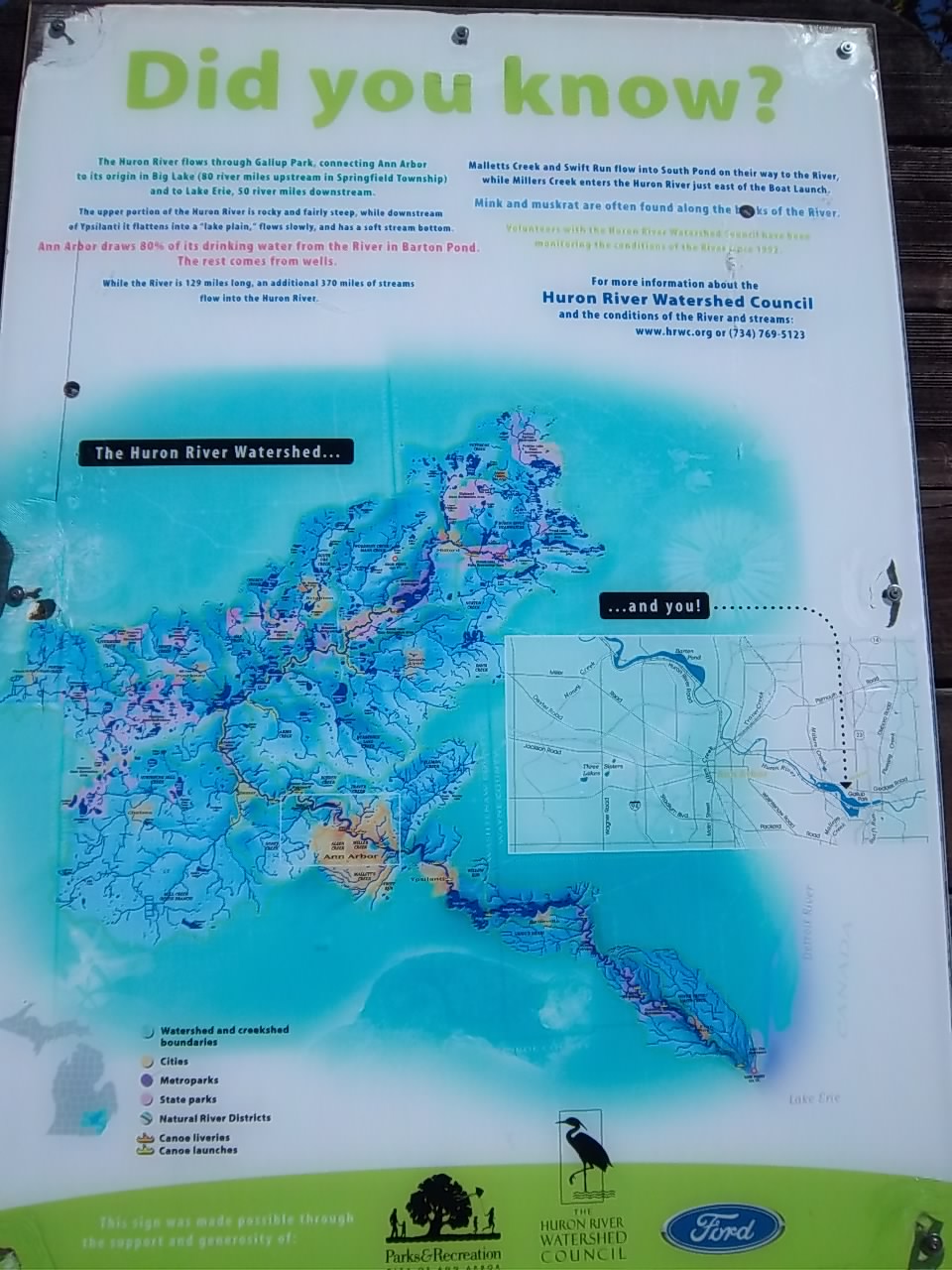 It illustrates Huron River flows through Ann Arbor all the way to Lake Erie. Very interesting to read these signs.