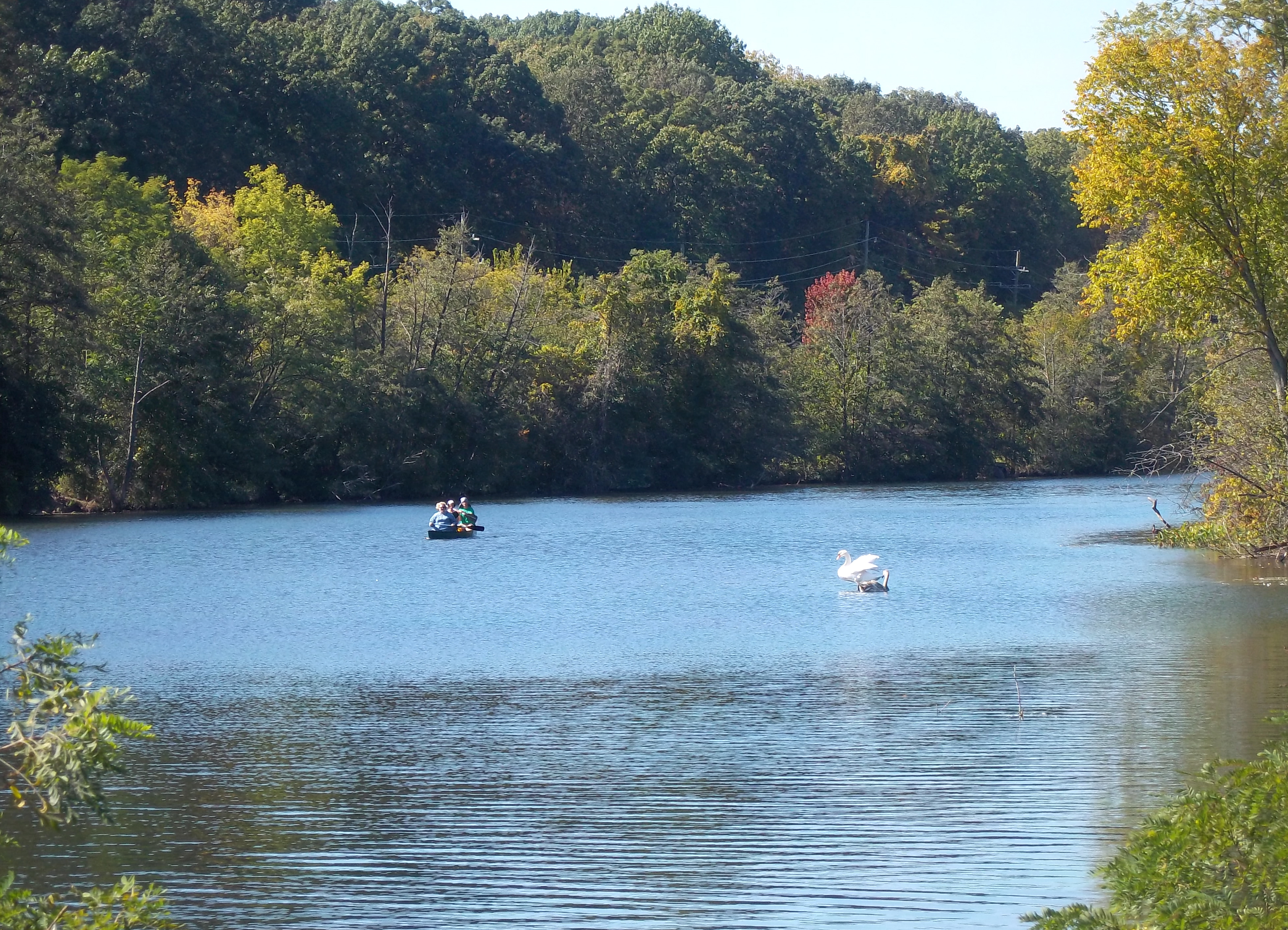 右手に、カヌー、カヤックなどのレンタルをできるGallop Park Livery (ボートの乗り場とでも訳す?) が見えてくる。 paddleboats は、手でこぐのではなく、足でペダルを踏んで進むボート。写真右手に見える水色のものがそれ。子供は大抵これが好きだ。 このLiveryのウエブサイトは、http://www.michigan.org/Property/Detail.aspx?p=G15916