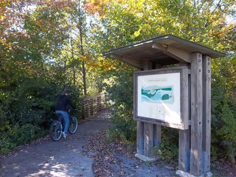 Huron Riverの南側の散歩道。 すぐ左側にAmtrakの線路が通っている。