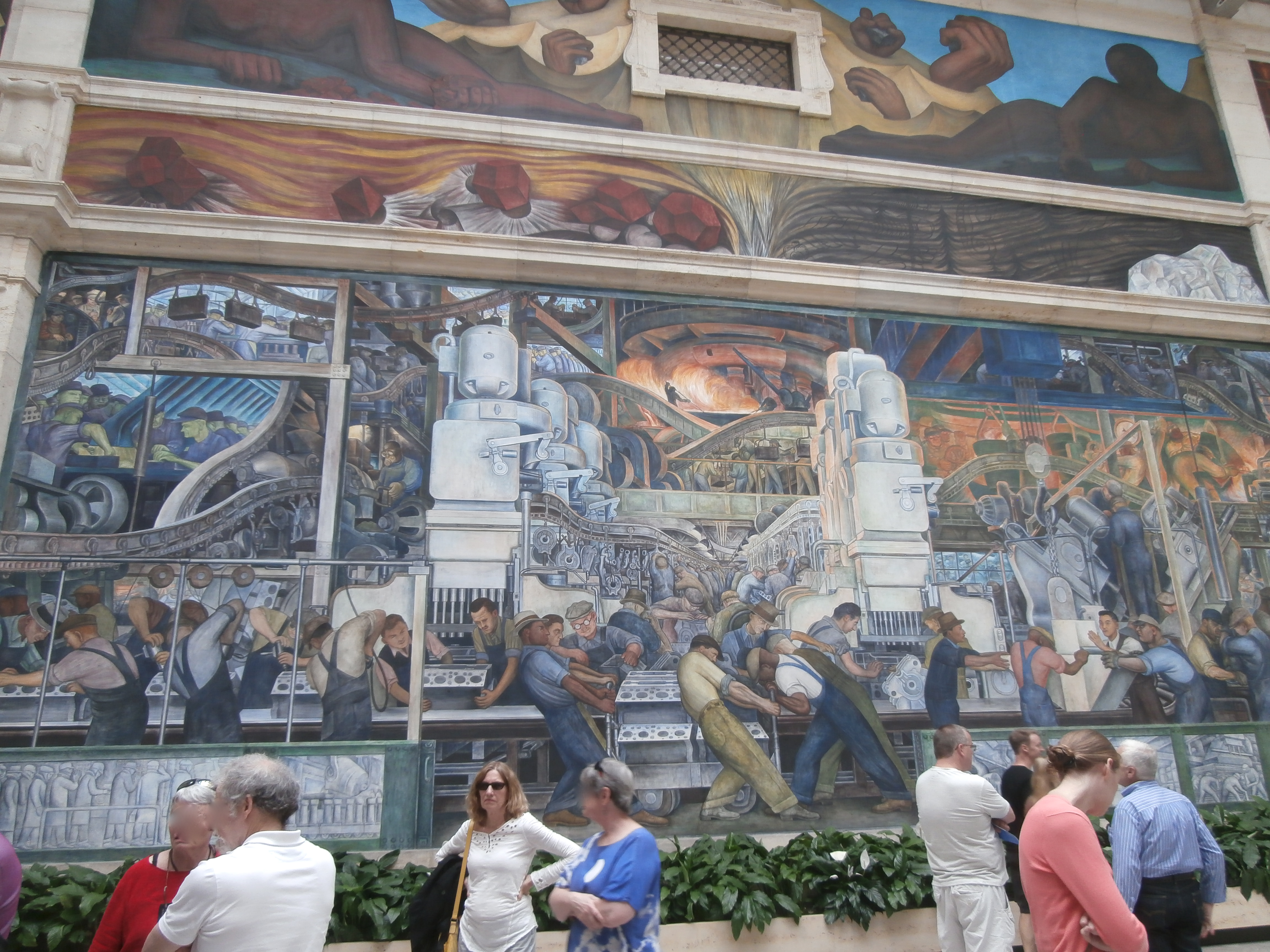 The wall on the left (the North Wall) is the people working in an automotive factory – of course. It’s Detroit.
